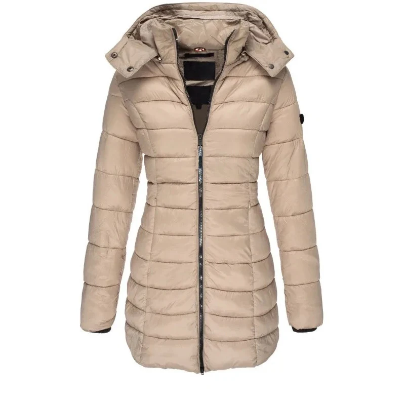 Winter Thicken Warm Women Parkas Solid Color Zippers Coats Long Sleeve Padded Puff Jacket Mid-Length Slim Female Hoodie Parkas