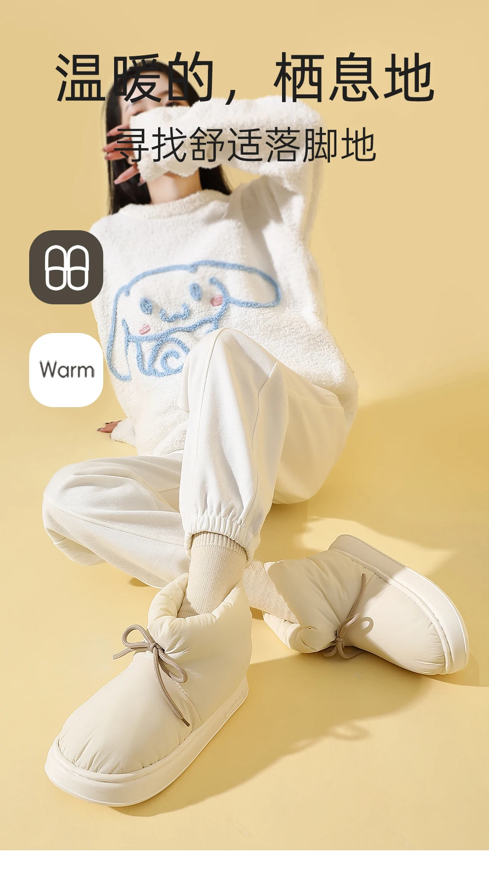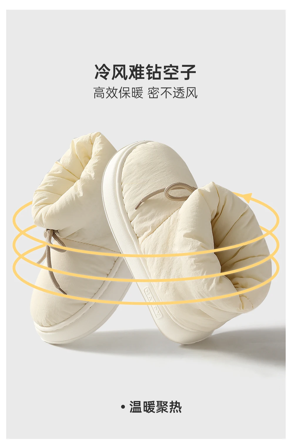 Winter Warm Thick Furry Women Ankle Boots Indoor Lace-up Plush Slippers Ladies Men Home Cotton Shoes