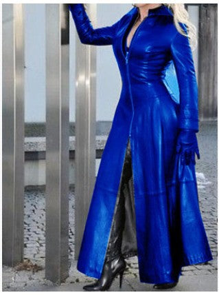 Winter Women's Fashion Cyberpunk Leather Long Jacket Casual Loose Button Solid Color Coats Lapel Biker Jacket