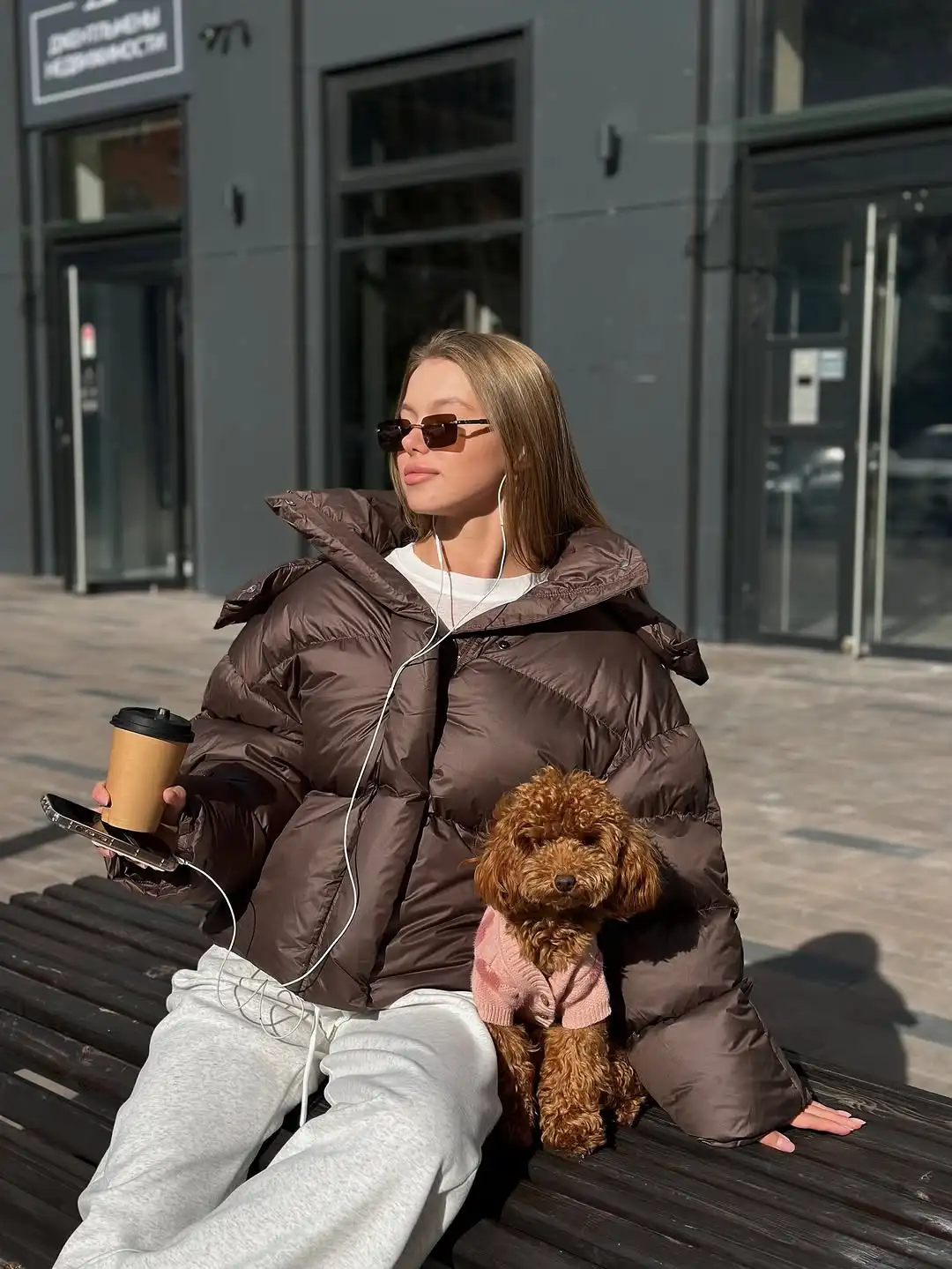 Women Autumn Hooded Short Cotton Coat Casual Brown Stand Collar Full Sleeve Loose Jacket Chic Lady Winter Office Commute Outwear