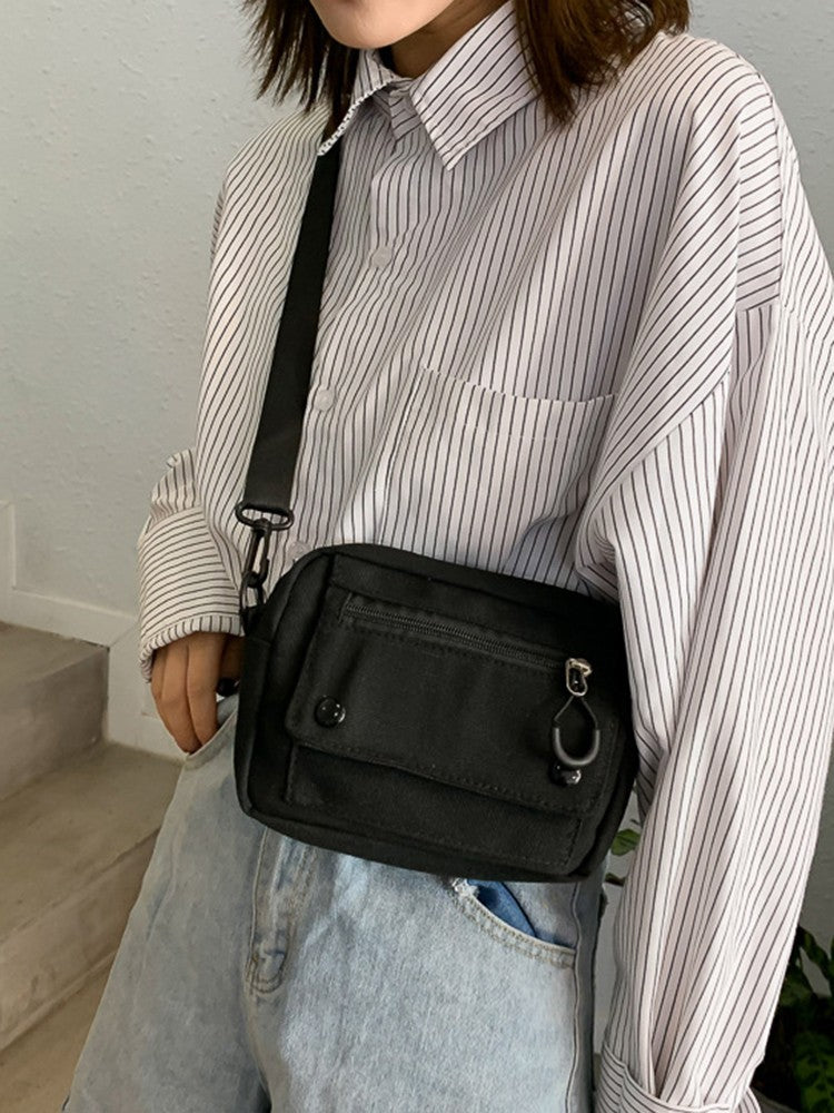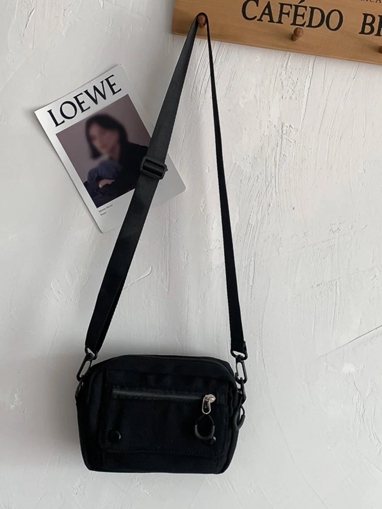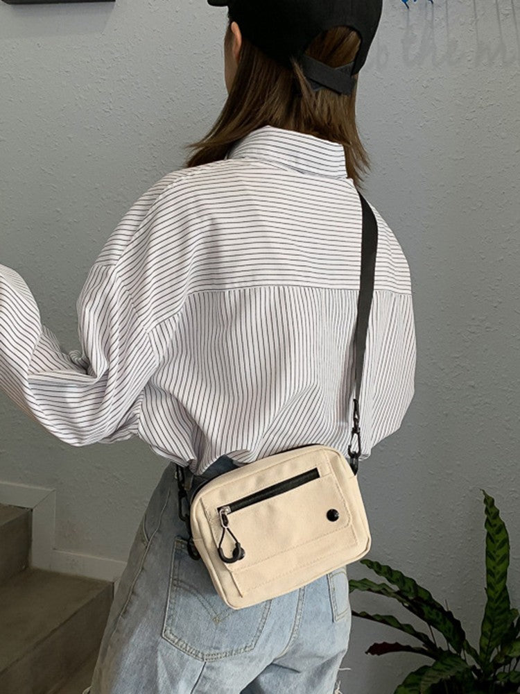 Women Canvas Handbags Korean Mini Student Bag Cell Phone Simple Small Crossbody Casual Ladies Zipper Shoulder Bag