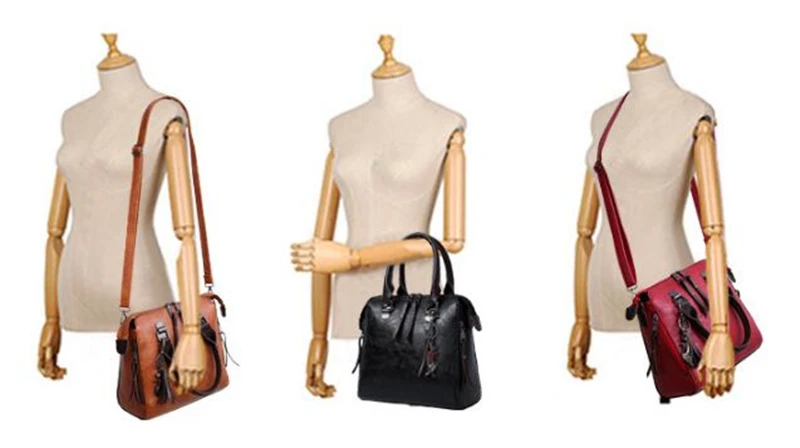 Women Composite Tassel Bag Luxury Leather Purse Handbags Famous Brands Designer Top-Handle Female Shoulder Bag 4pcs/set
