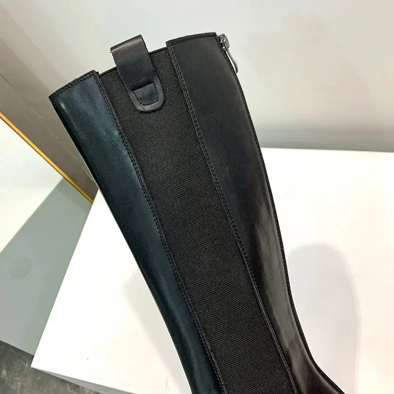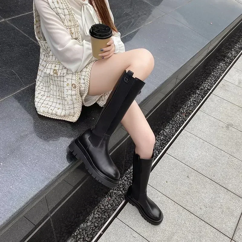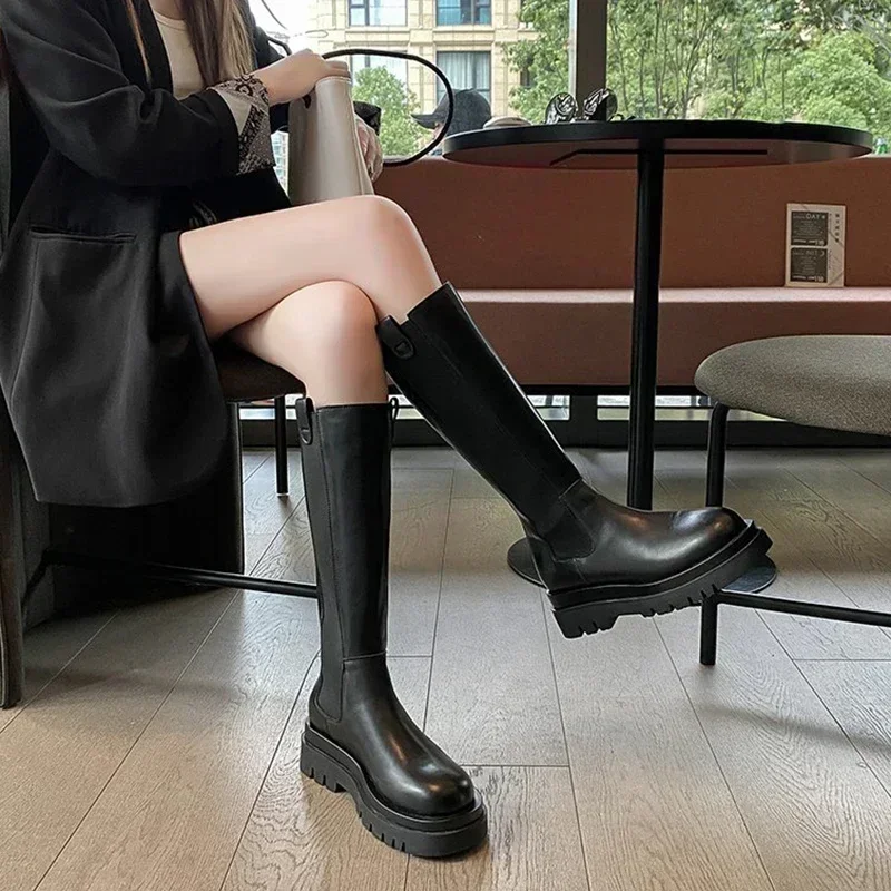 Women High Boots Fashion Woman Non-slip Waterproof Winter Zipper PU Leather Knee High Boots Women Chunky Platform Long Boots