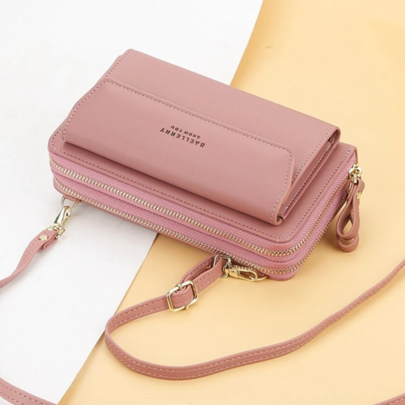 Women Long Wallet Korean Version Crossbody Bag Double Zipper Large Capacity Clutch Bag Shoulder Handbag Female Mobile Phone Bag
