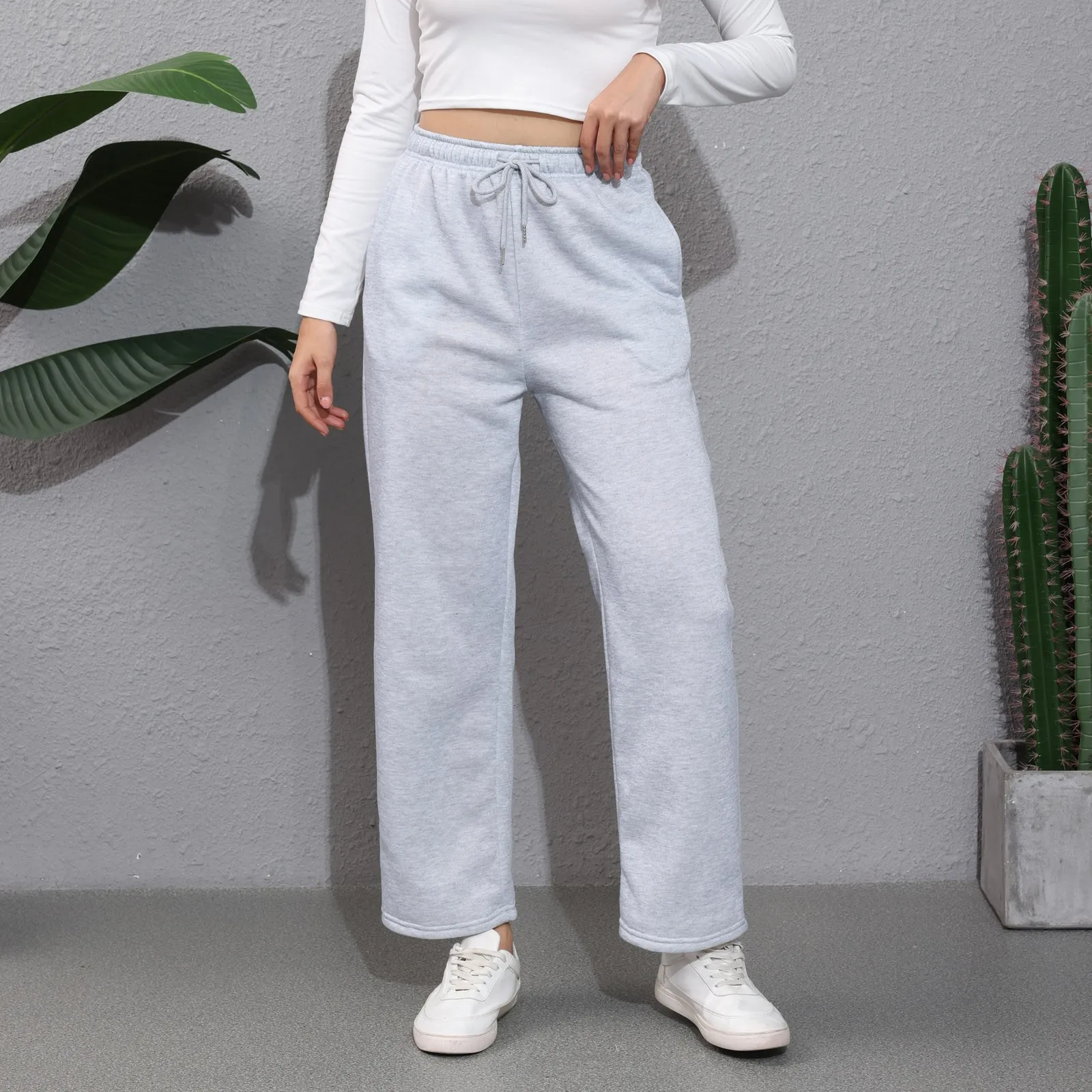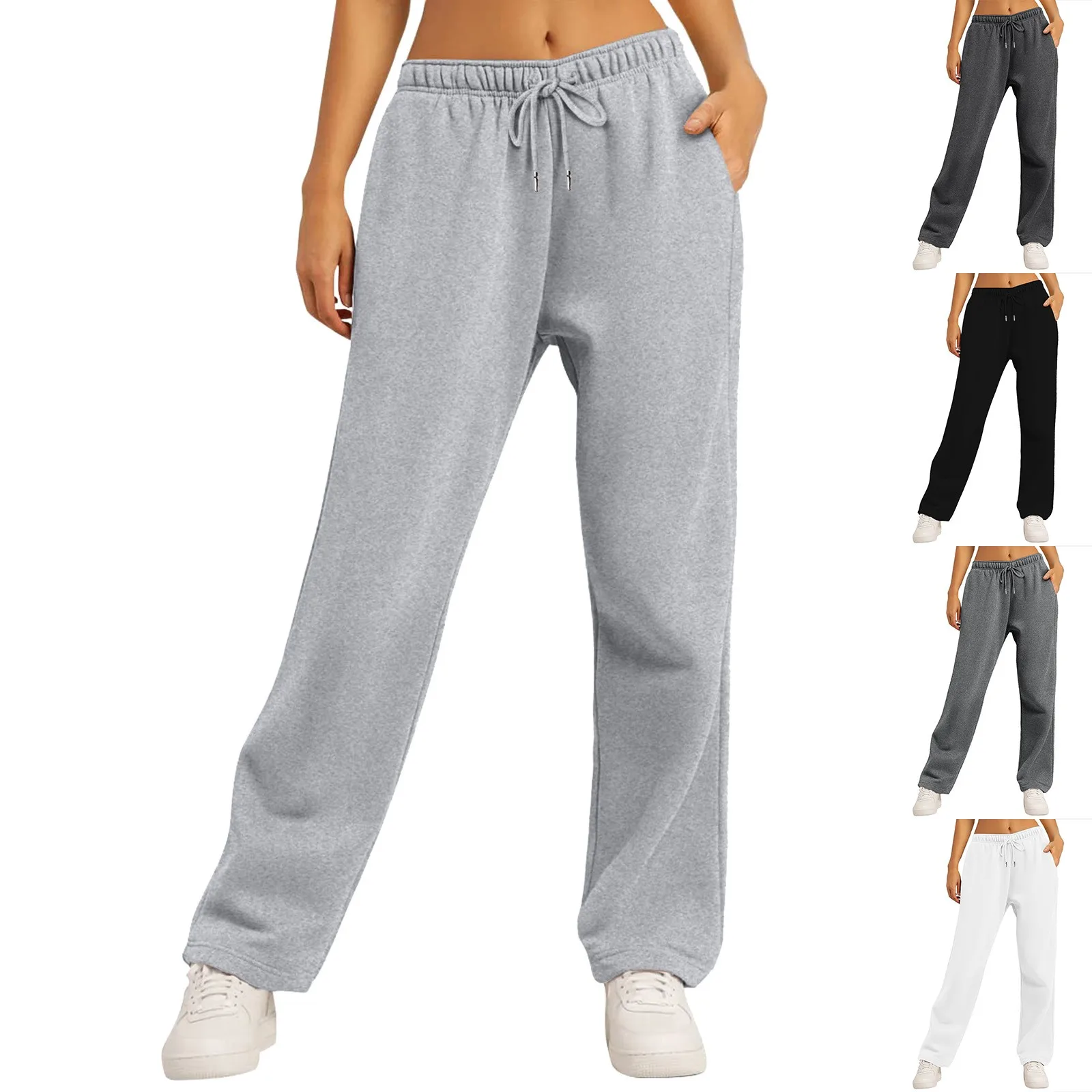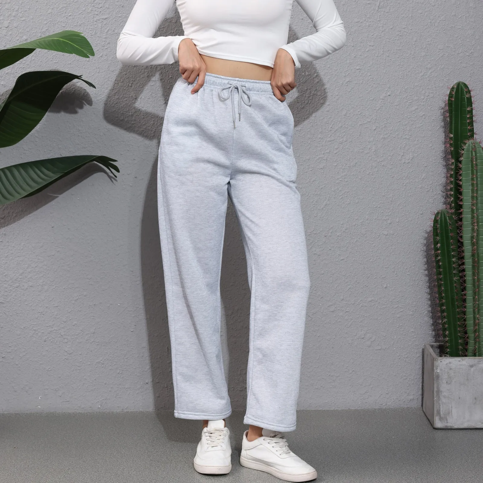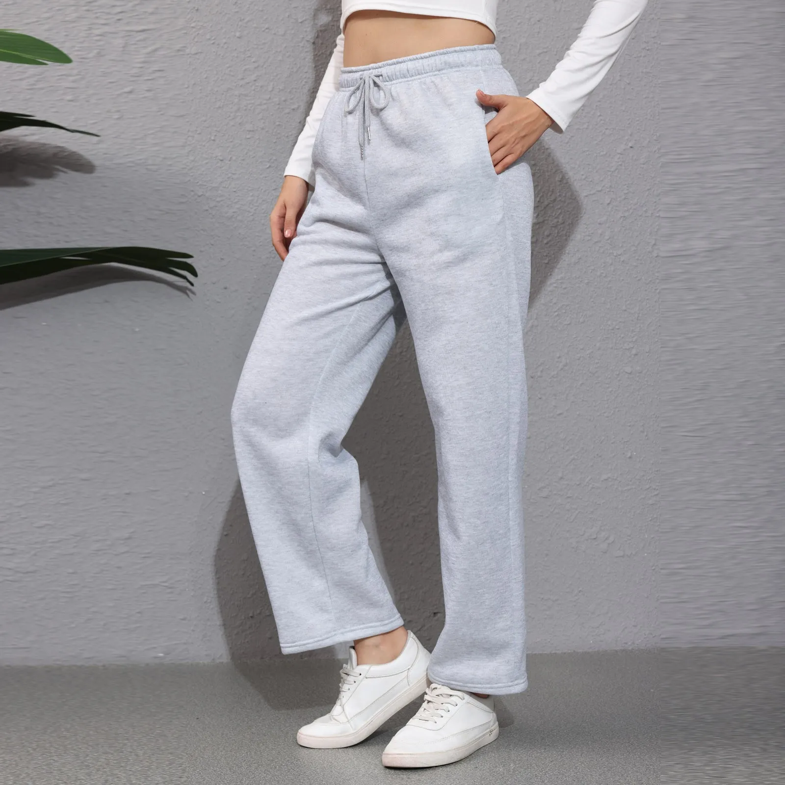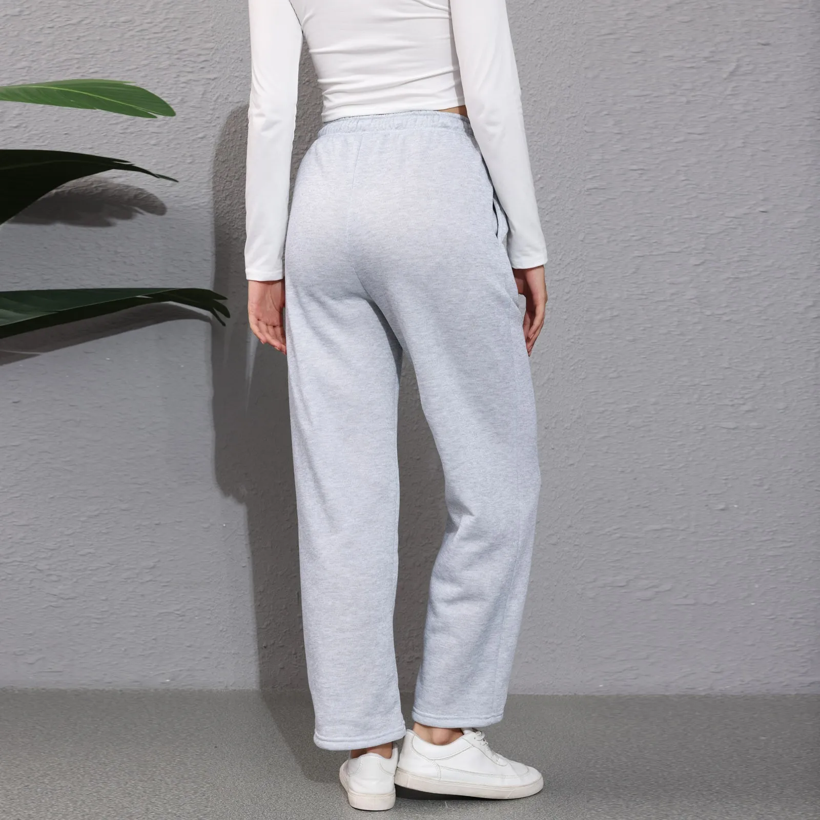 Women's Winter Sweatpants Solid Color Casual Pants Women's Fleece Sweatpants Wide Leg Straight Pants