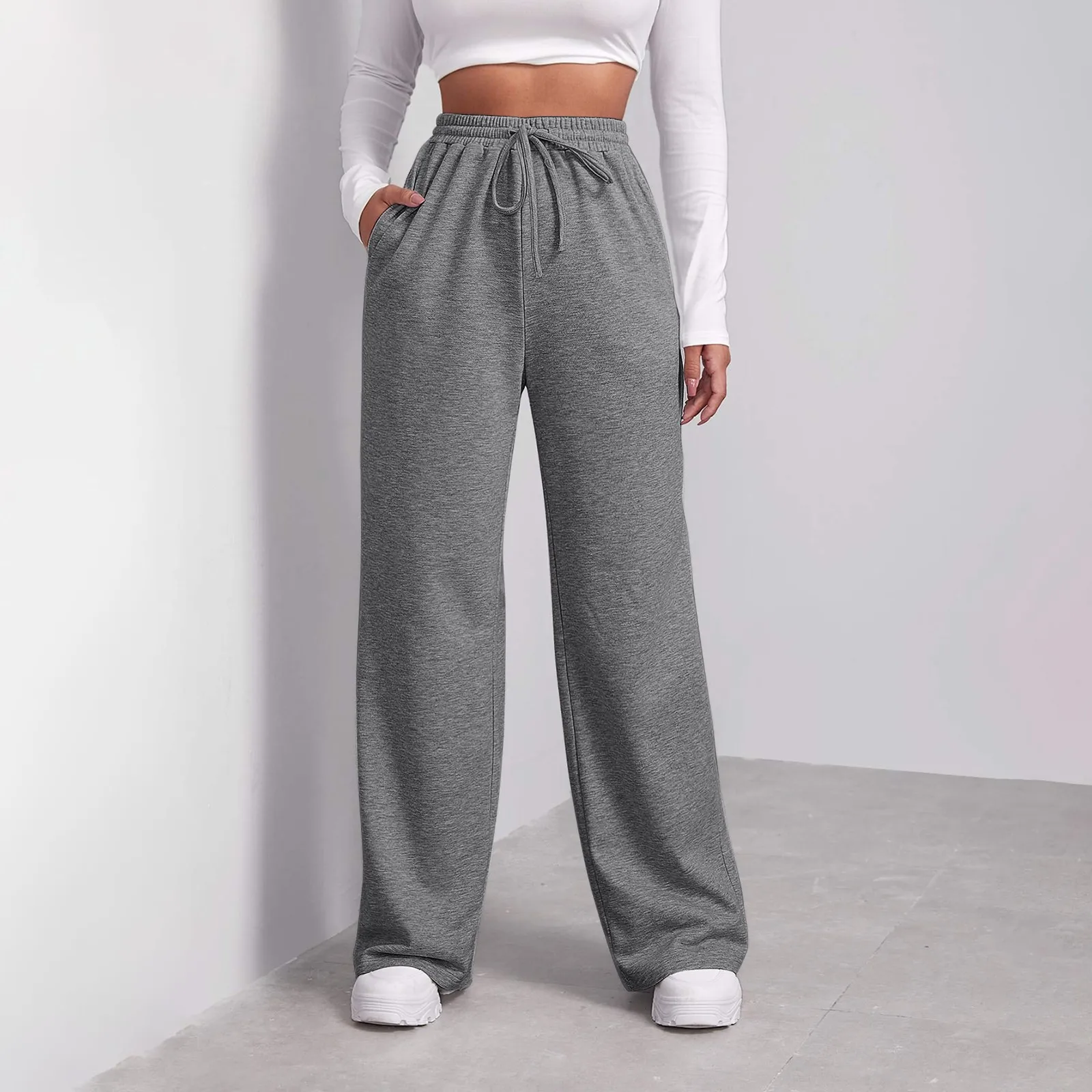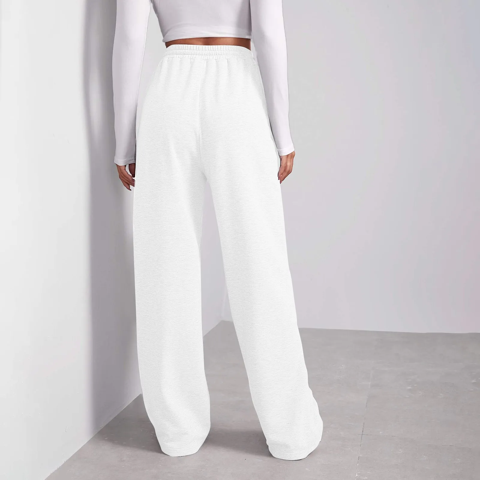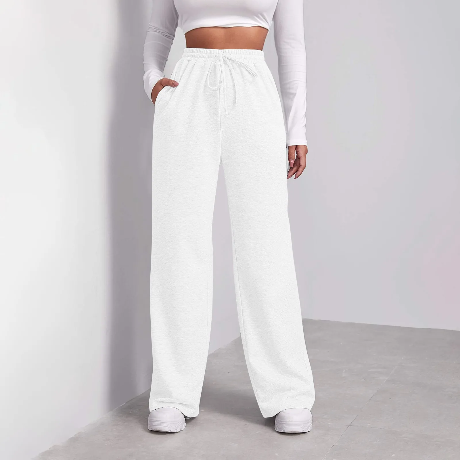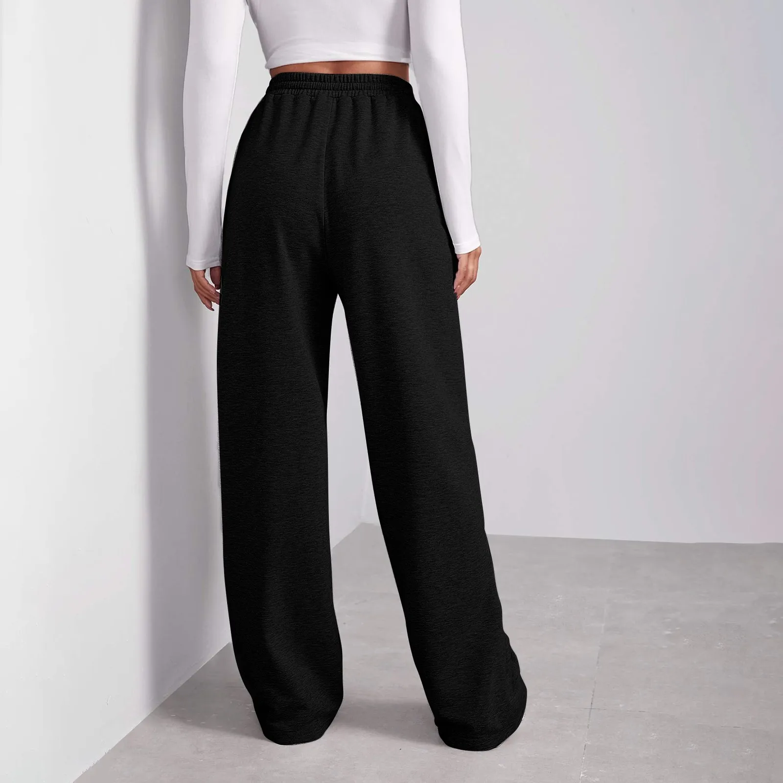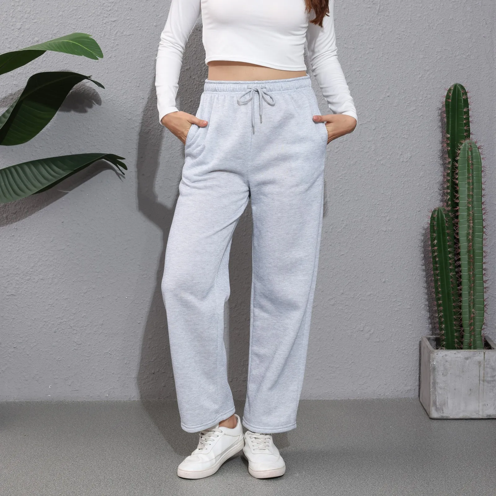 Women's Winter Sweatpants Solid Color Casual Pants Women's Fleece Sweatpants Wide Leg Straight Pants