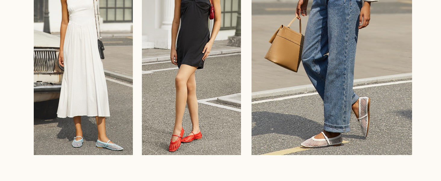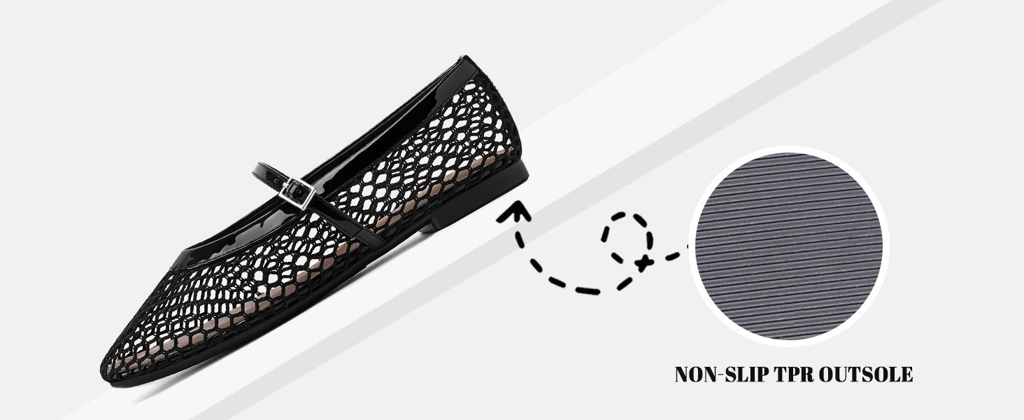 Mesh Upper: Made with a fishnet mesh and patent leather combination upper, women's ballet flats offer excellent durability and breathability that keeps your feet cool and comfortable on hot summer days