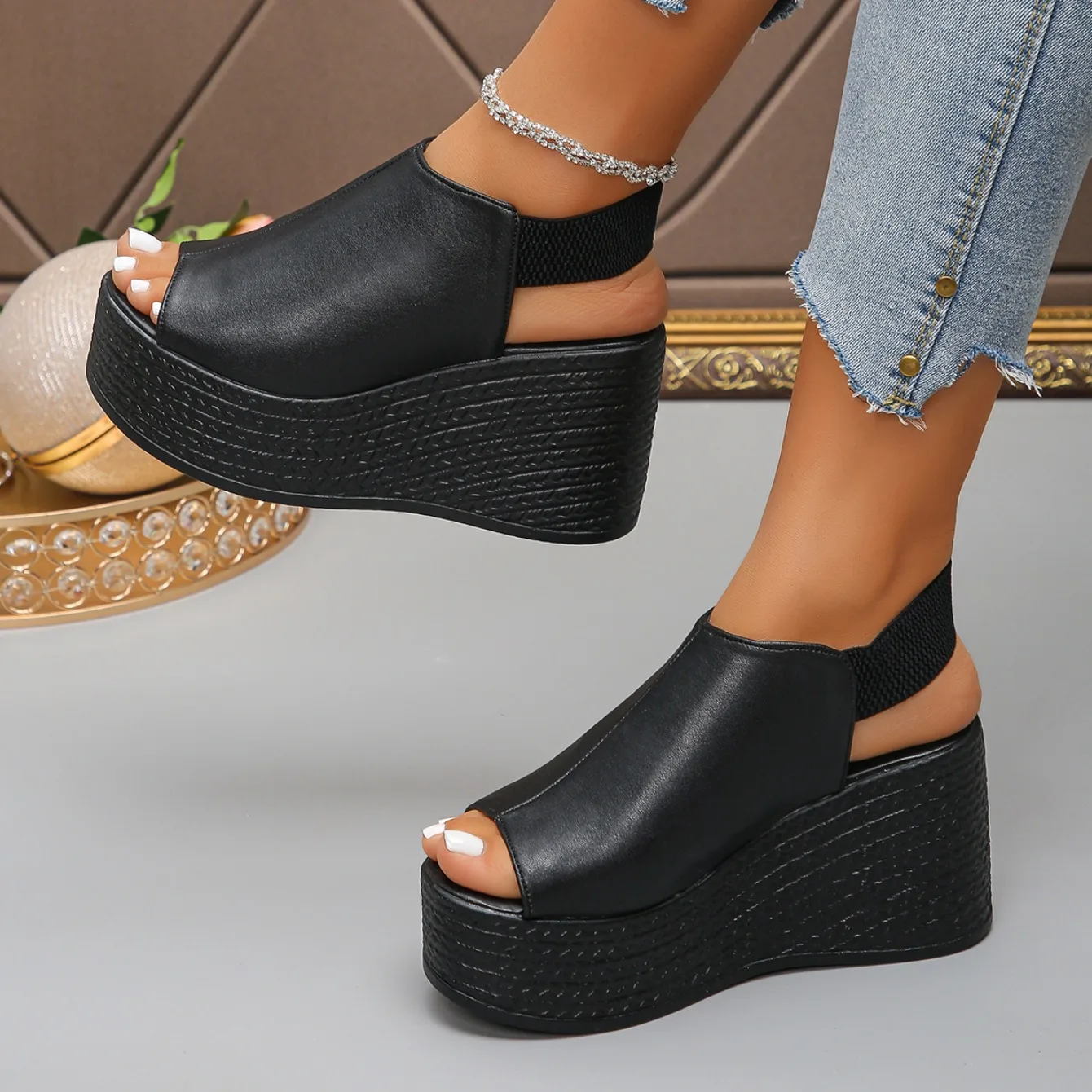 Women Sandals High Quality Summer Leather Wedge Sandals Women 2025 New Platform High Heels Shoes Sexy Open Toe Elegant Sandals