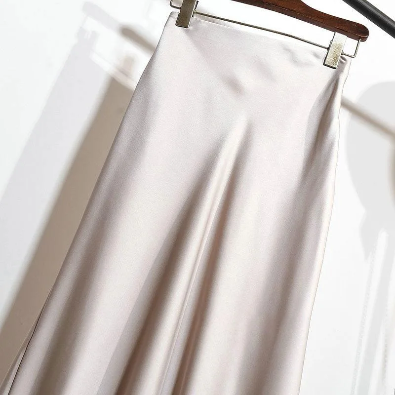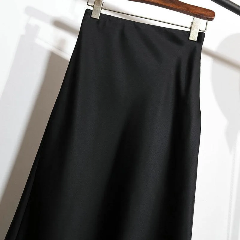 Women Satin Fishtail Skirts Fashion Streetwear Female Elastic High Waist Skirts Solid Color Summer Ladies Slim Silk A-line Skirt