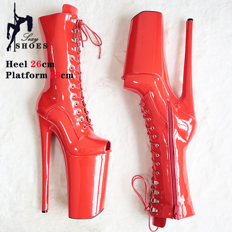 Women Sexy Stripper Shoes Super High Heels Lace-up 26cm Peep Toe Platform Pole Dancing Ankle Boots Stiletto Fetish Large Size 44