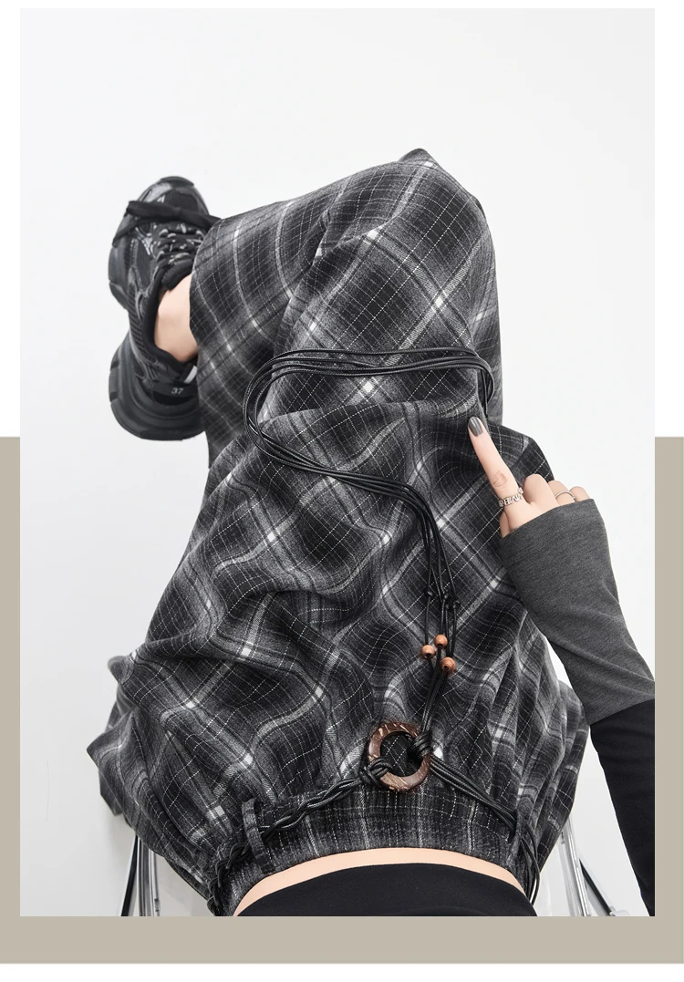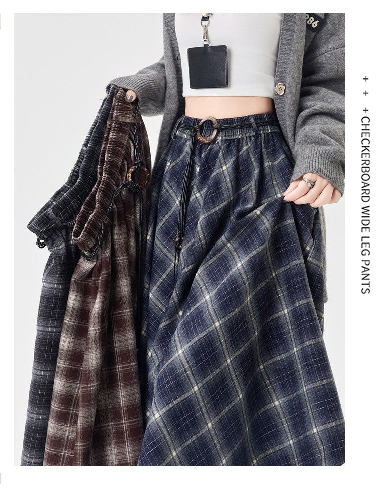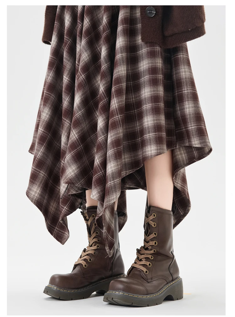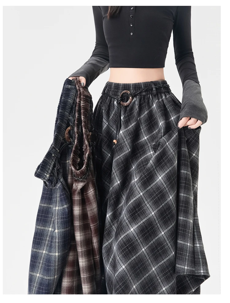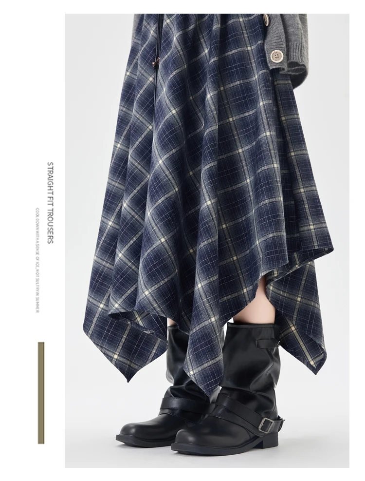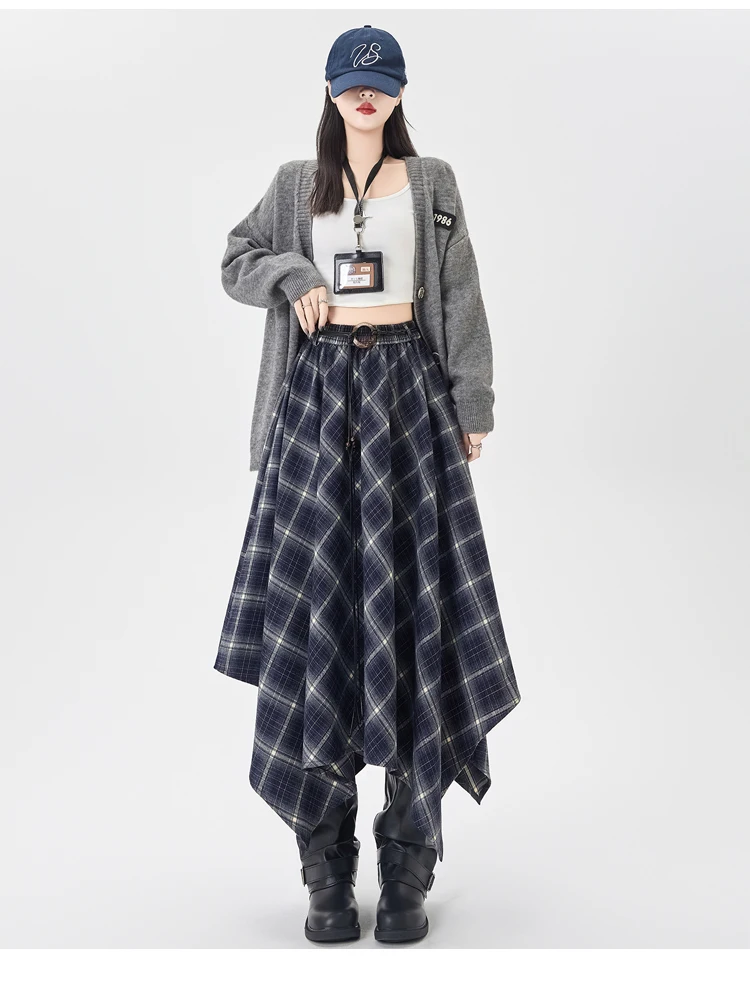 Women Skirt Plaid High Waisted Elastic A Line Mid Length Korean Style Fashion Retro Versatile Irregular Autumn Skirt