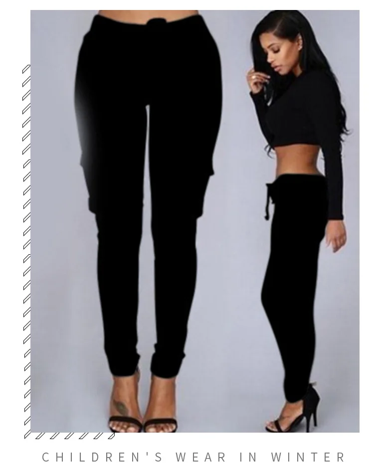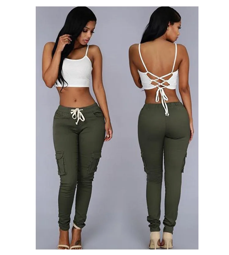 Women Slim Fit Pencil Pants Multi Pocket Drawstring Tie Waist Casual Trousers with Belt