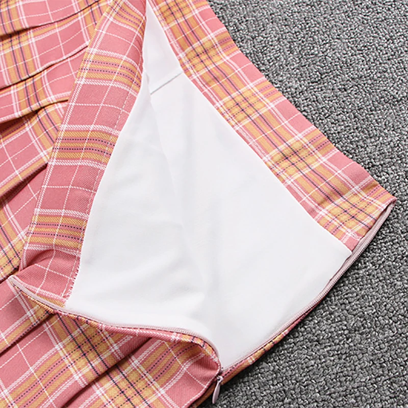 Women Summer Preppy Style Plaid Pleated Skirt School Uniform Anti Glare JK Skirt Harajuku Zipper Culotte High Waist A-line Skirt