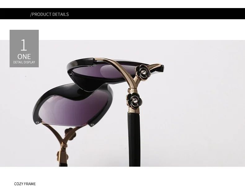 Women Sunglasses Trendy Celebrity-style Round Large-frame Stylish Sun Glasses with Camellia Hollow-out Accent Decorations