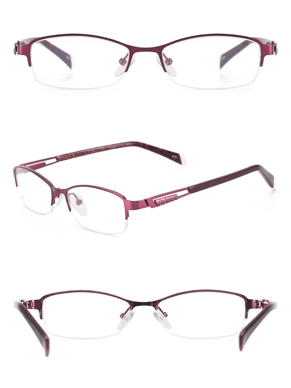 Women Vintage Semi Rimless Eyeglasses Frame Metal Half Rim Oval Spectacle For Prescription Lenses Myopia Multifocal