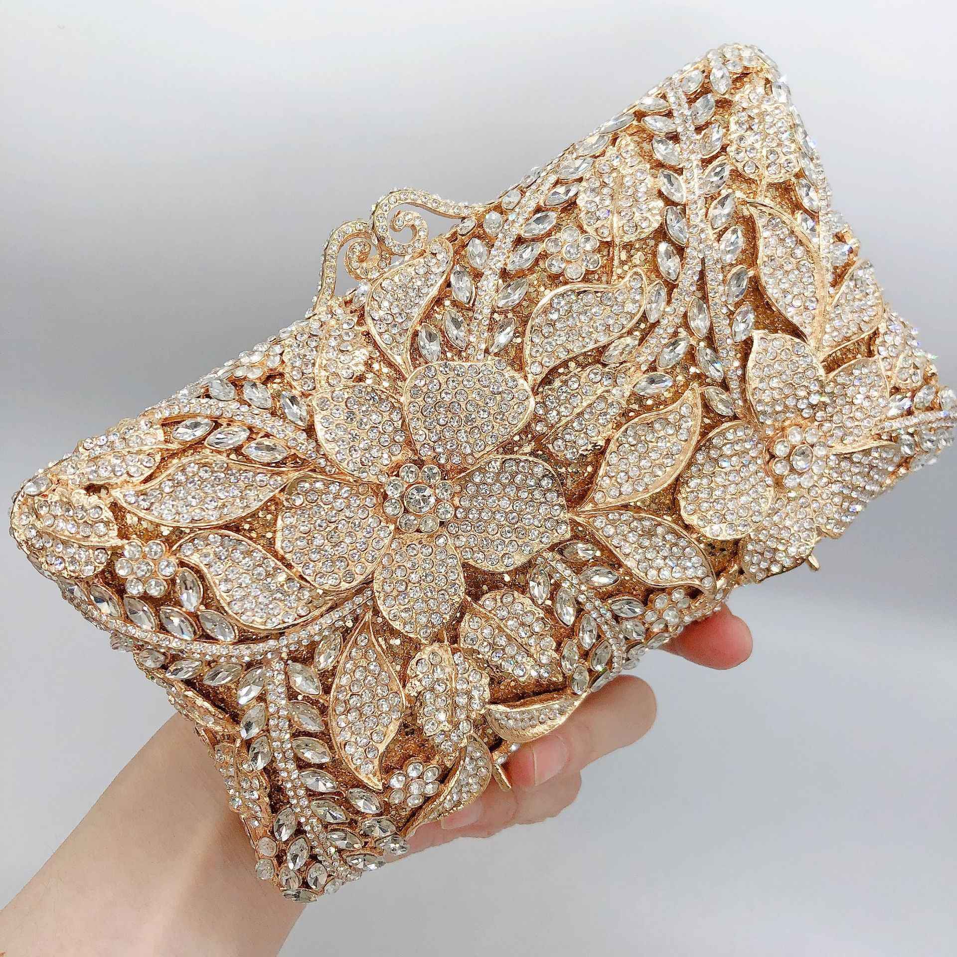 Women XIYUAN Evening Bags Gold/Silver Chain Shoulder Bags Handbags Stones Day Clutches Diamonds Metal Ladies Clutch Handbags