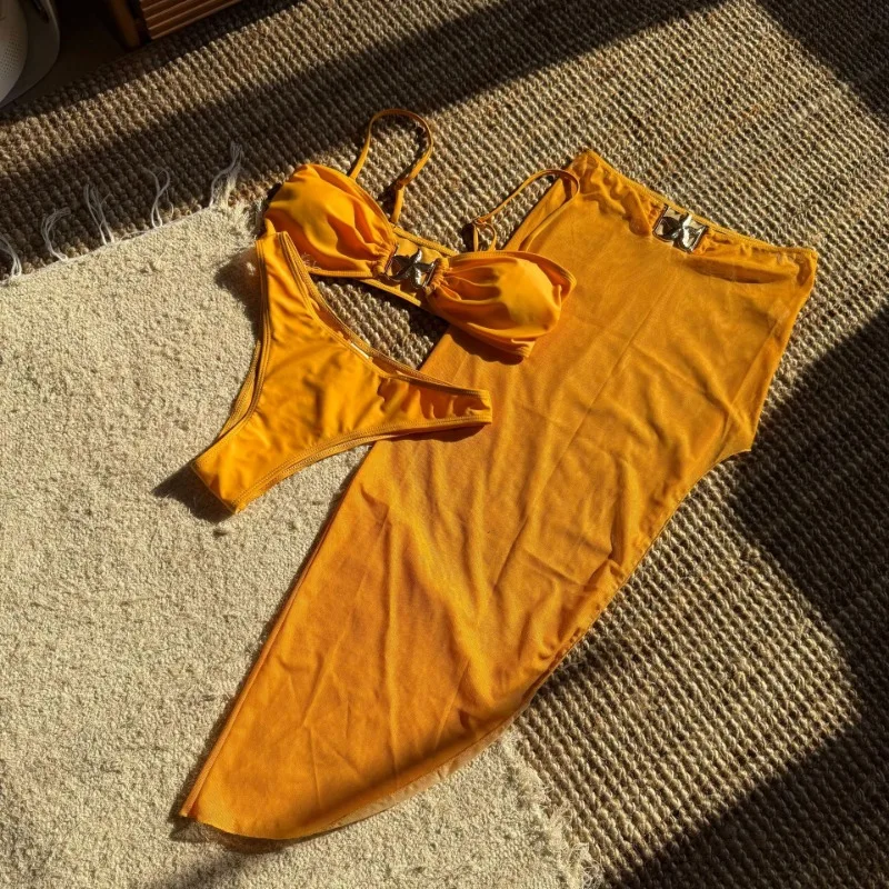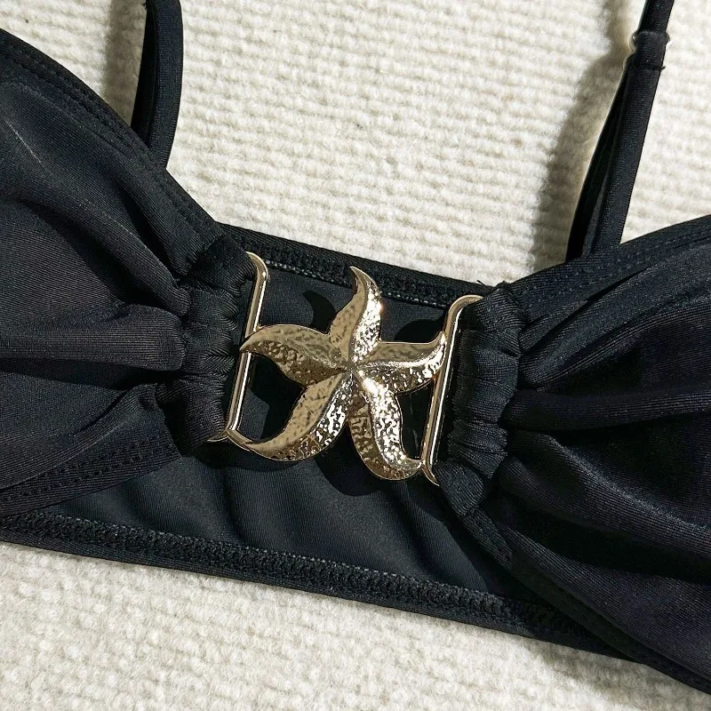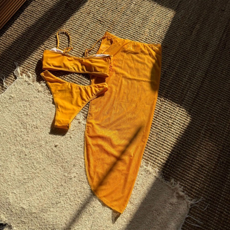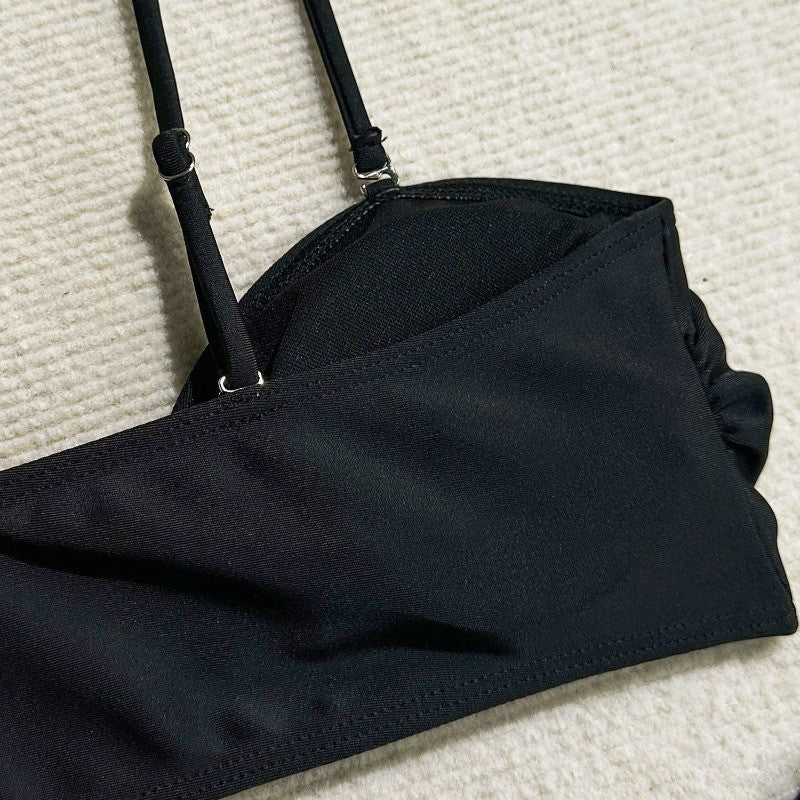 Womens 3 Piece Bikini Sets Sexy Bandeau Swimsuits for Women Lace Up Mid Rise Ruched Strapless Bathing Suits