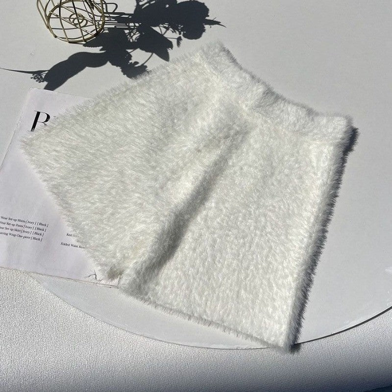 Women's Autumn Winter Faux Mink Hair Shorts Sweet Soft High Waist Slim Hairy Elasticity Shorts Fashion Knitting Homewear Shorts