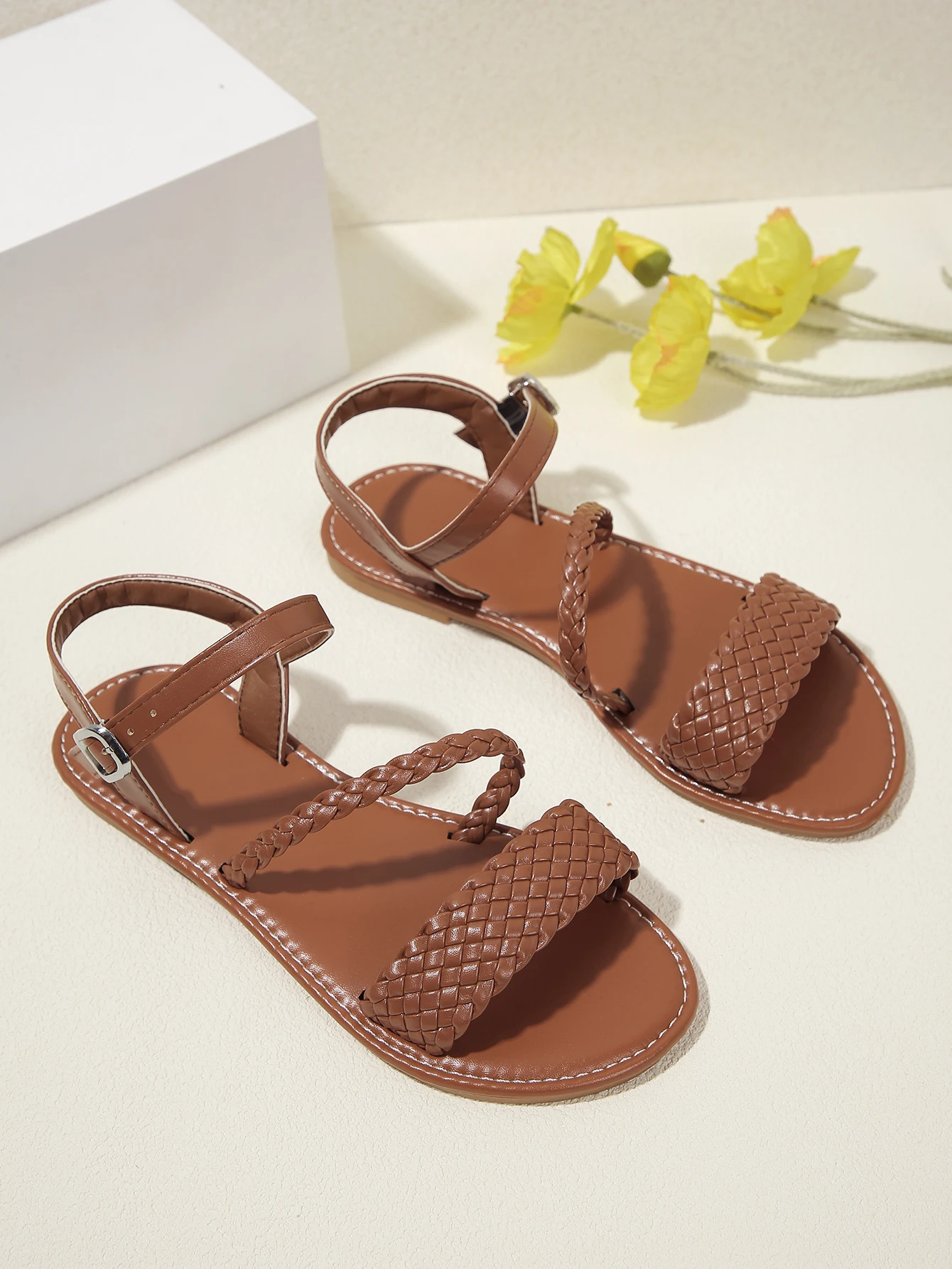Women's Casual Flat Sandals Braided Design Popular Brown Color Comfortable Shoes for Everyday Wear