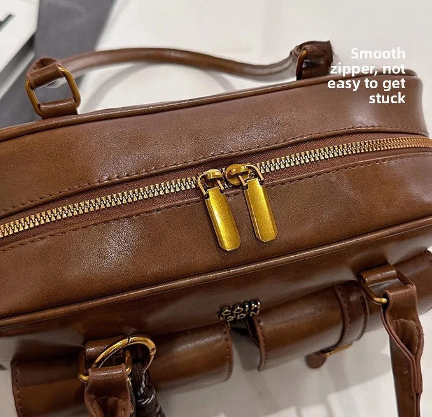 Women's Coffee Brown Multi-Pocket Handbag Shoulder Bag, Stylish Versatile Letter Crossbody Purse for Travel Work Shopping Dates