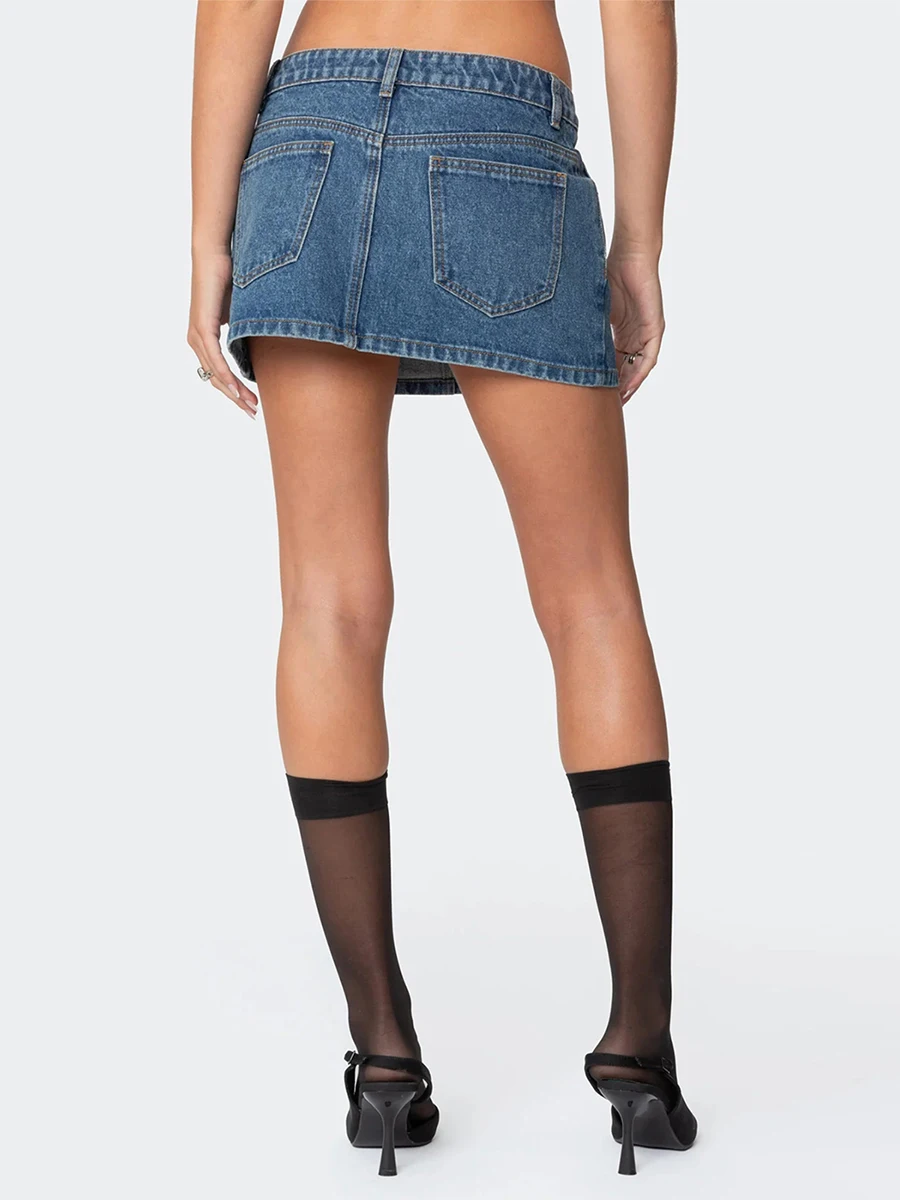 Womens Denim Mini Skirt Y2k Vintage Low Rise Jean Skirt Sexy Going Out A-Line Pencil Bodycon Short Skirt with Pockets