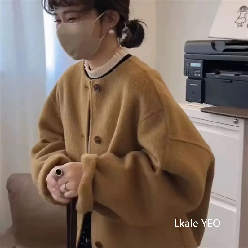 Women's Double-sided Woolen Coat 2025 Autumn Winter Fashion Elegant Femme Jacket Versatile Loose Ladies Jacket Woolen Outerwear