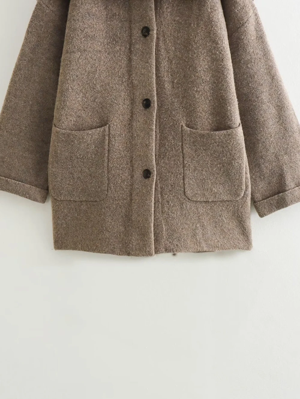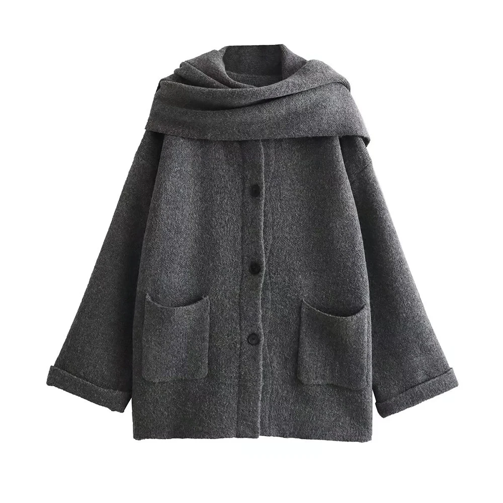 Women's Fashion Scarf Short Knit Coat Jacket Loose Warm Long Sleeve Two Pieces Solid Color High Street O-Neck Outerwear