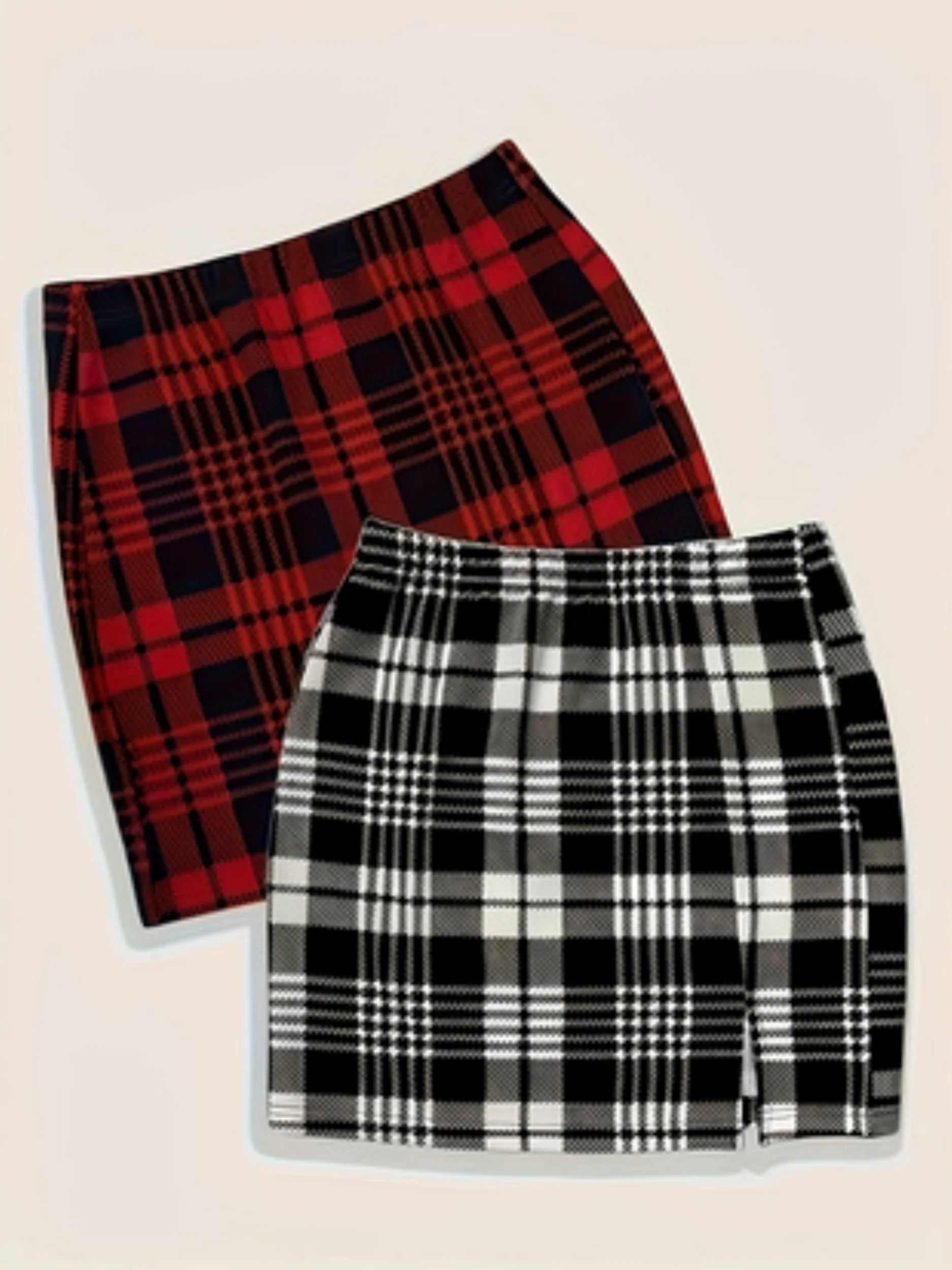 Women's fashionable new checked casual versatile women's large-sized mid-length skirt, two-piece set