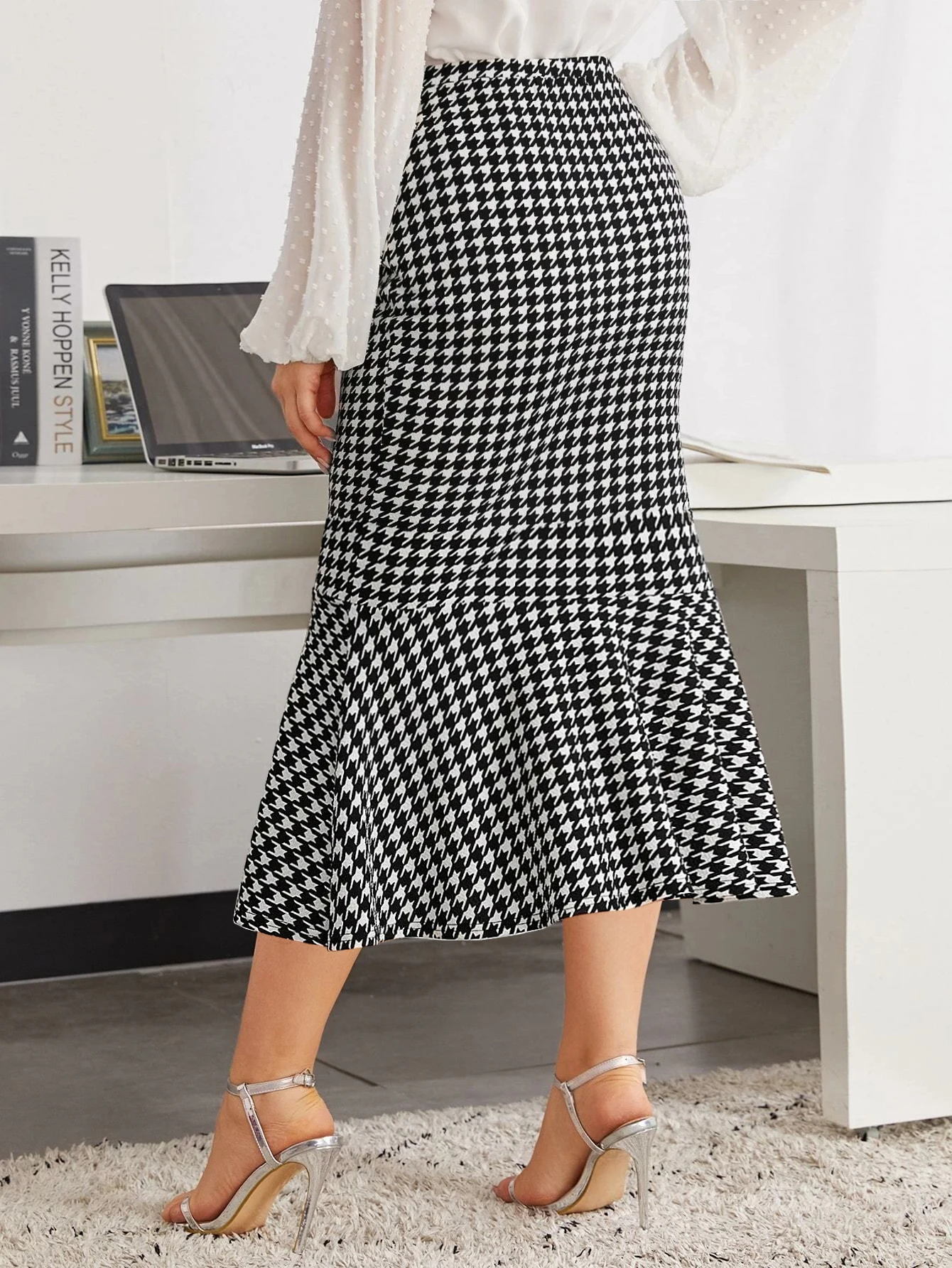 Women's fashionable ruffled hem houndstooth skirt, elegant and fashionable for autumn and winter