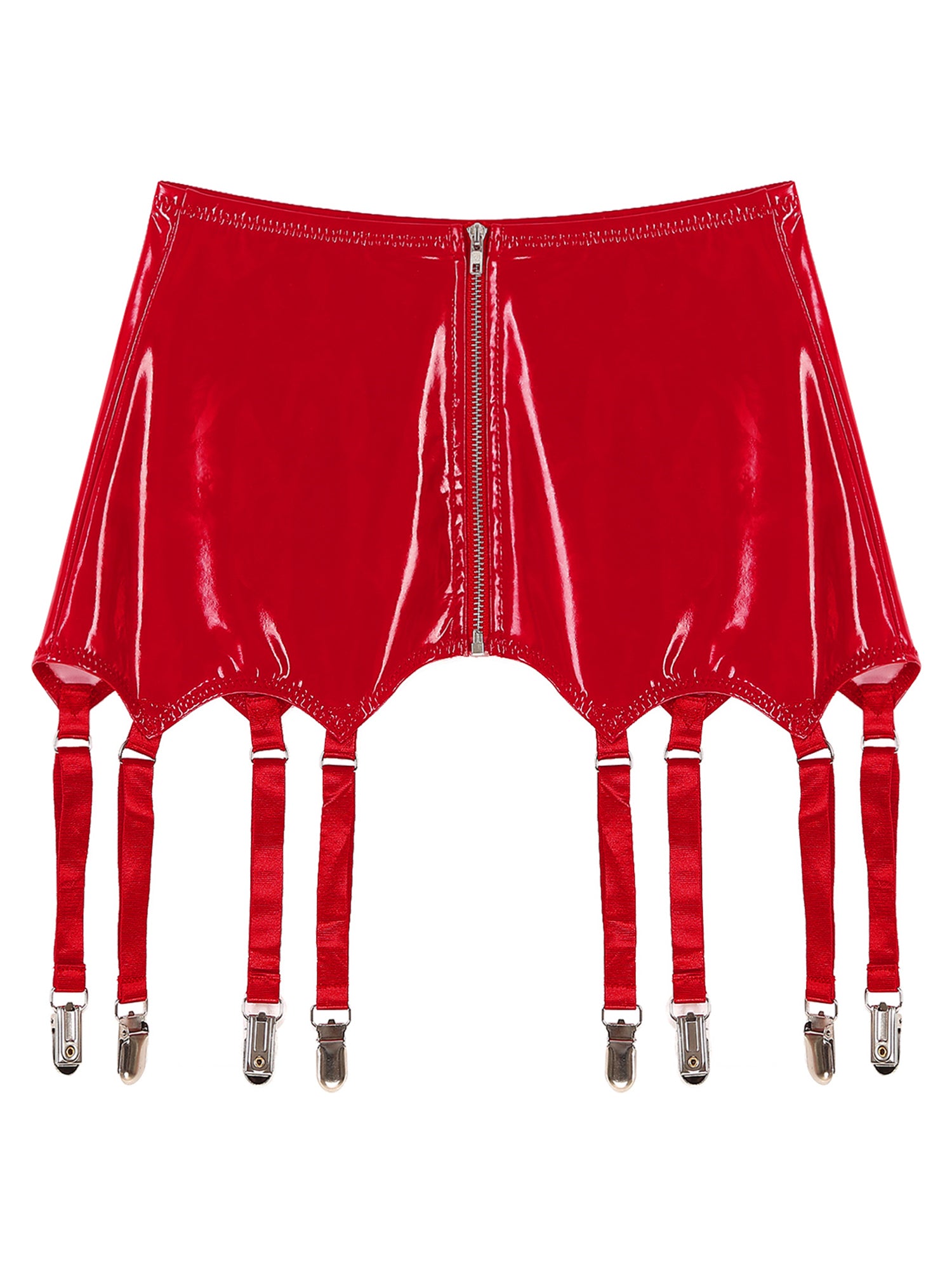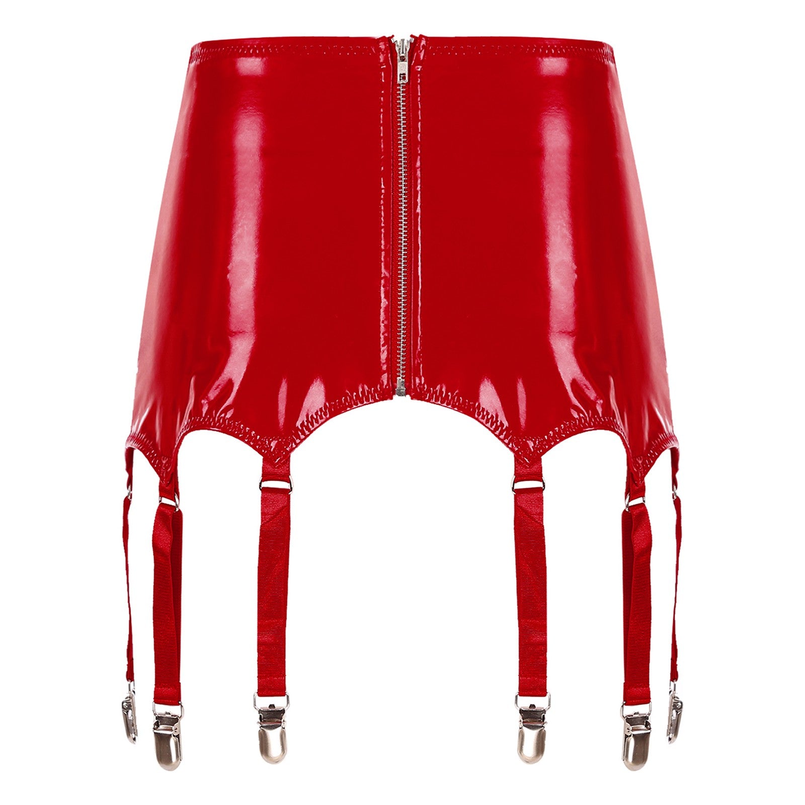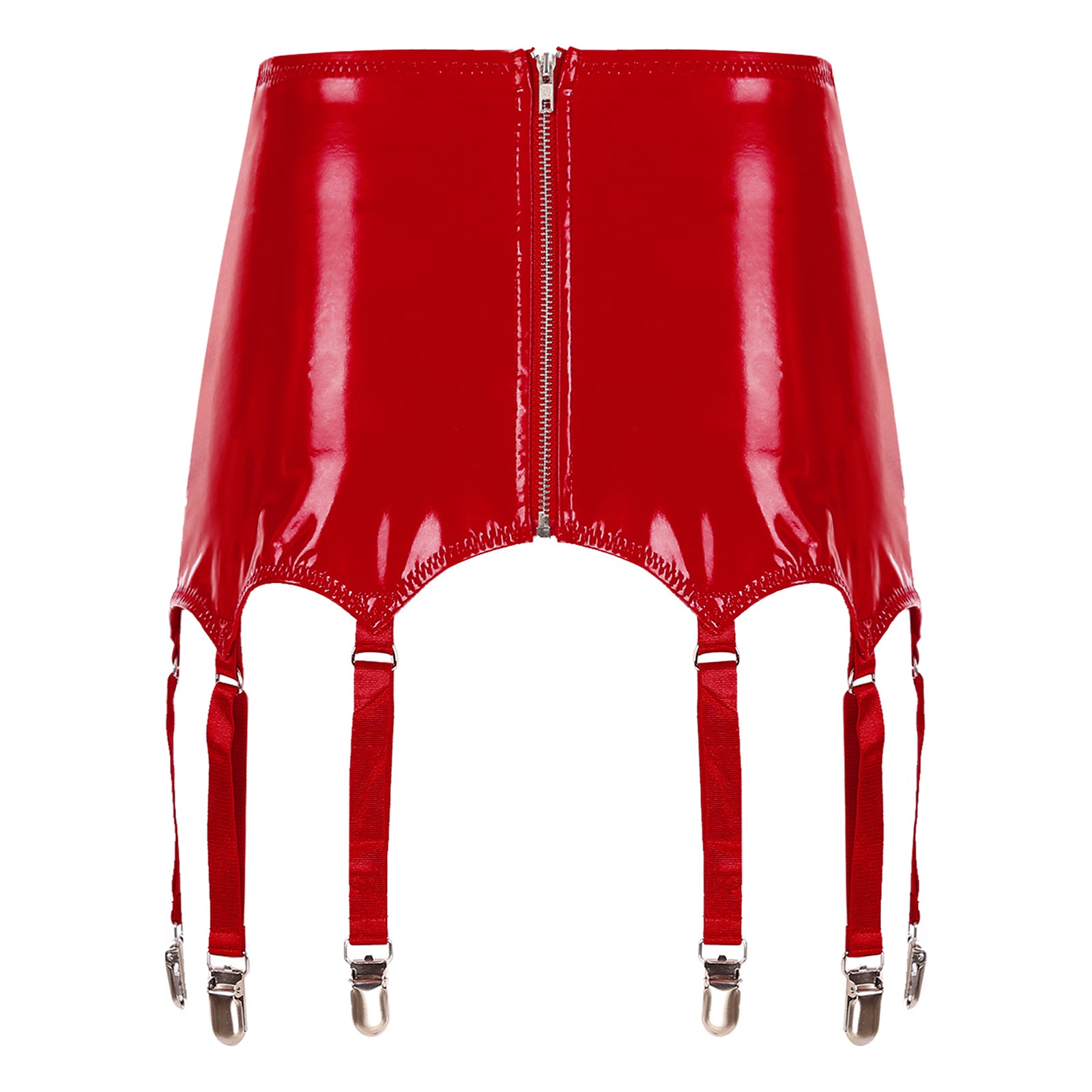Womens Garters Latex Skirts Ladies Suspender Belt Wet Look Patent Leather Mini Skirts Garters with Metal Clips Clubwear Costume
