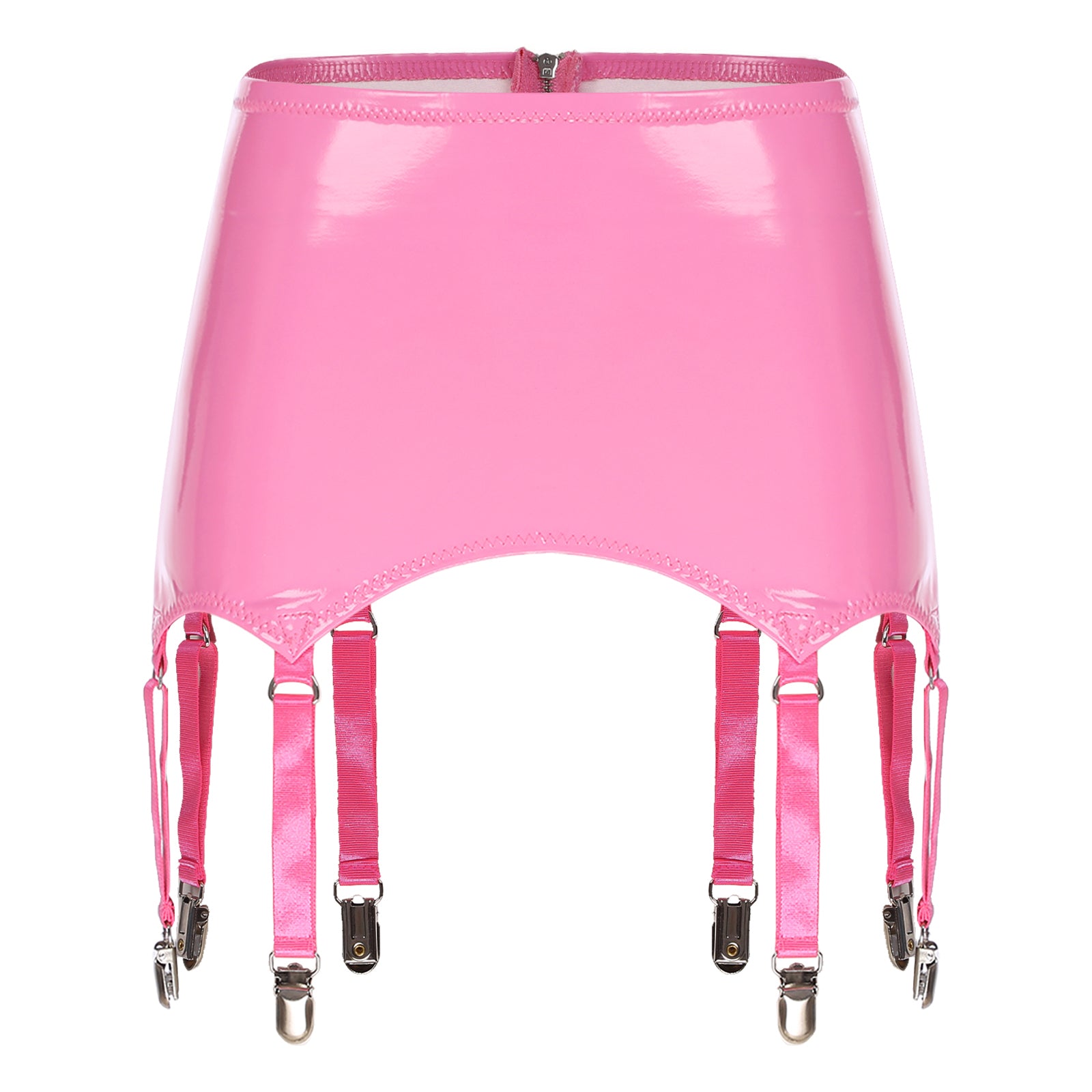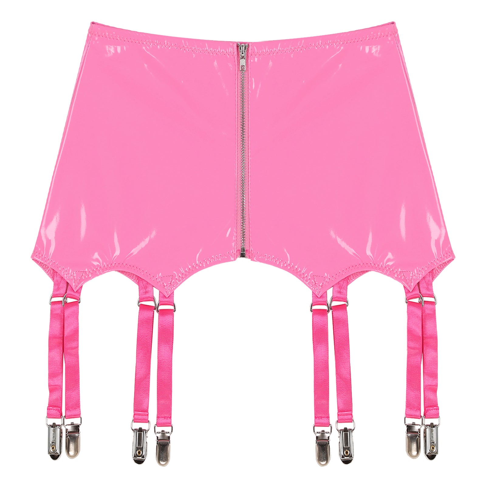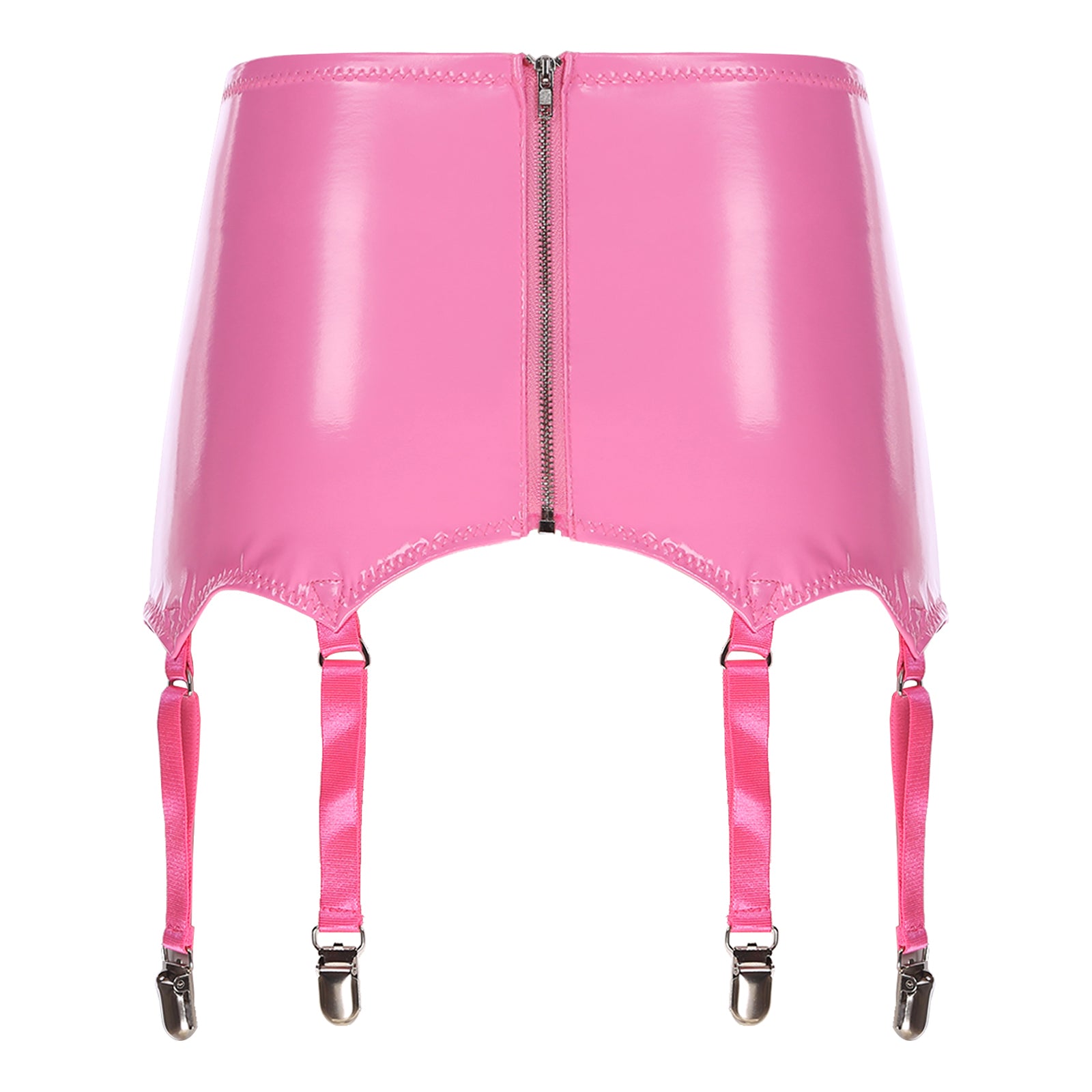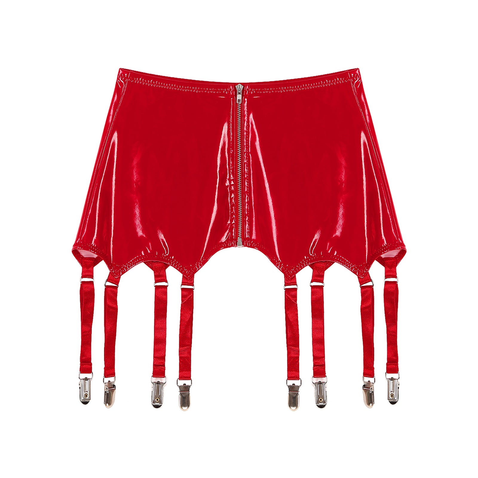Womens Garters Latex Skirts Ladies Suspender Belt Wet Look Patent Leather Mini Skirts Garters with Metal Clips Clubwear Costume