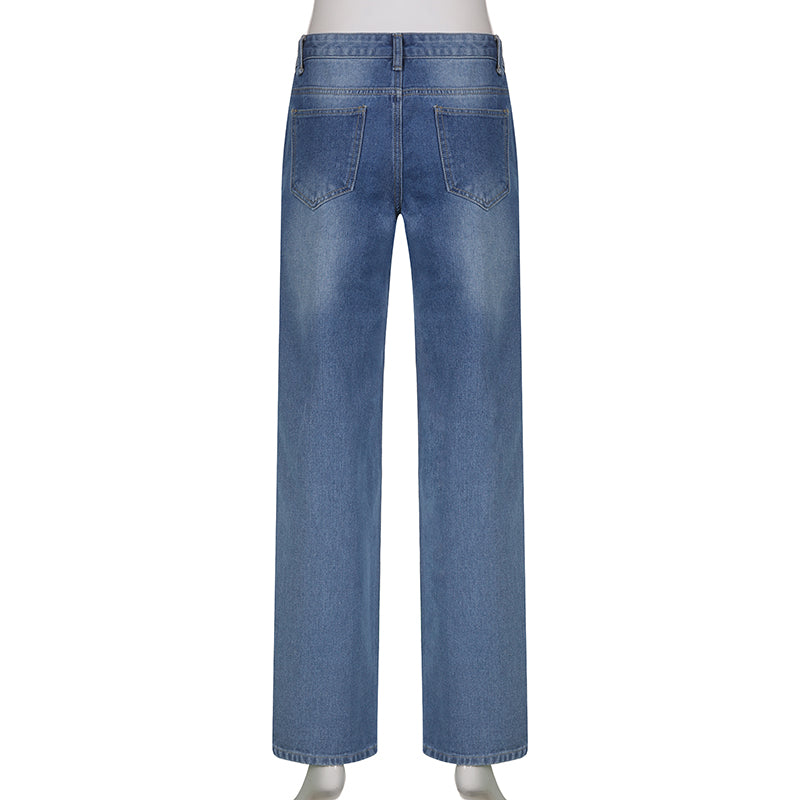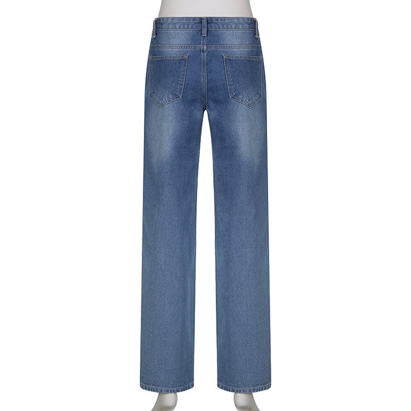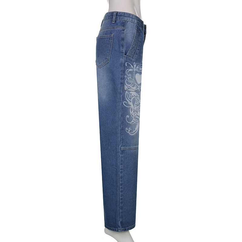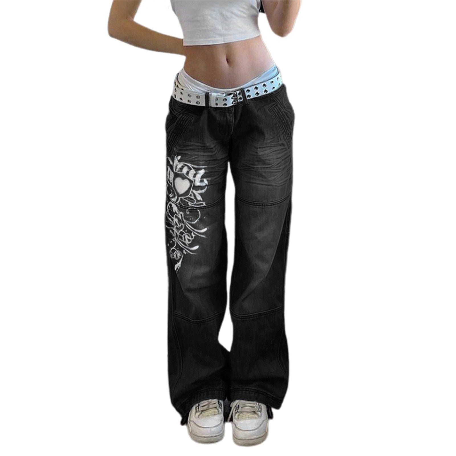 Women's Harajuku Print Jeans Floral Print Vintage Aesthetic Baggy Straight Pants Grunge Casual Outfits Trousers Streetwear Y2k