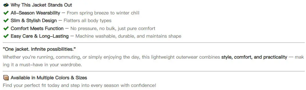 Lightweight Outerwear – Perfect for All Seasons, Designed for Comfort & Style