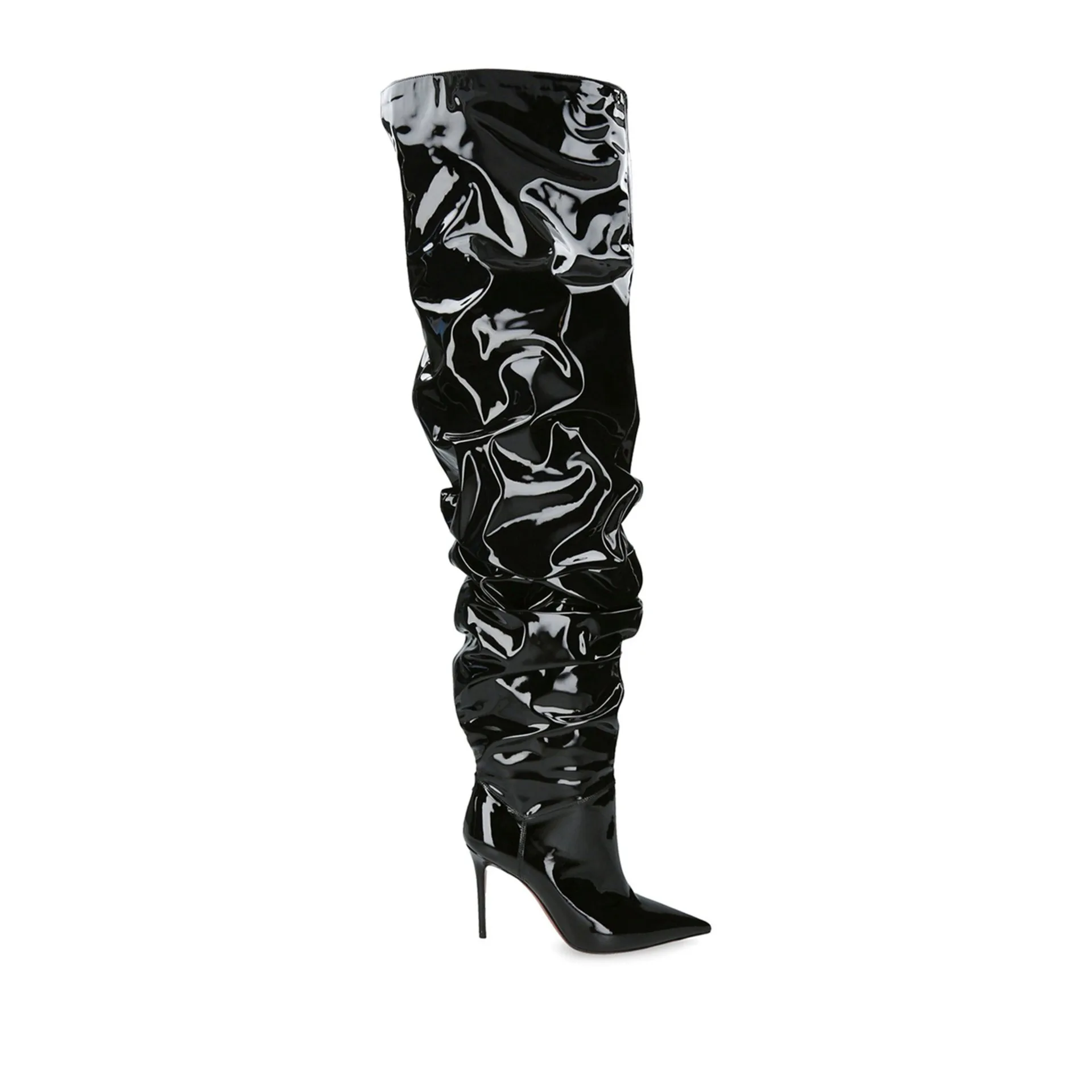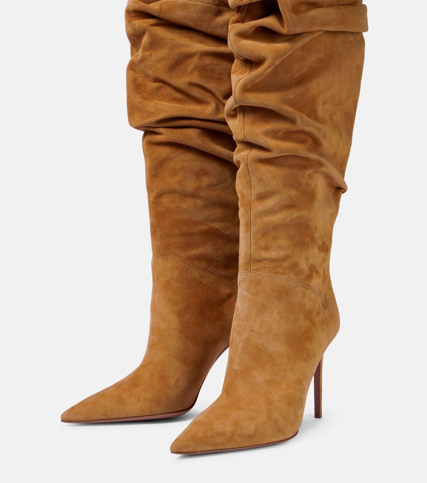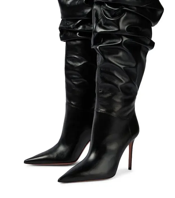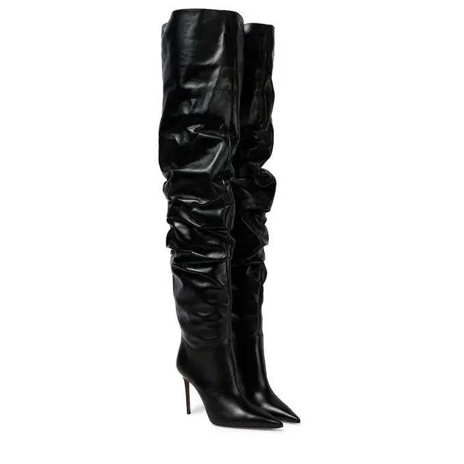 Women's New Pointed Pleated High-heeled Knee High Boots, Autumn and Winter Suede Thigh Boots, Women's Plus Size Stacking Boots