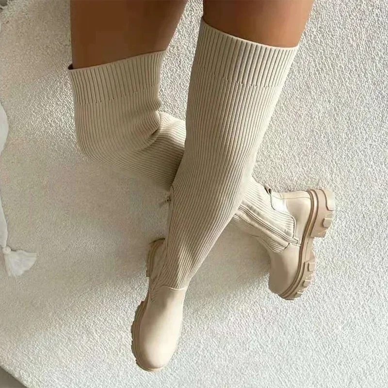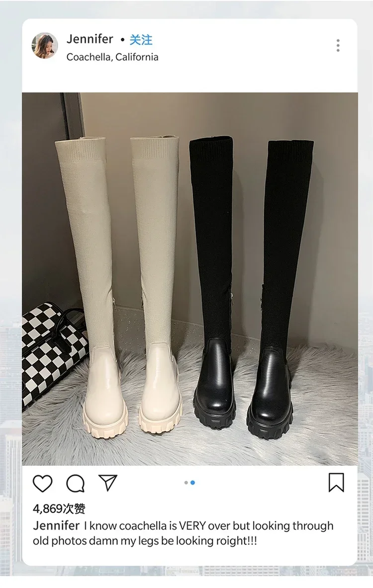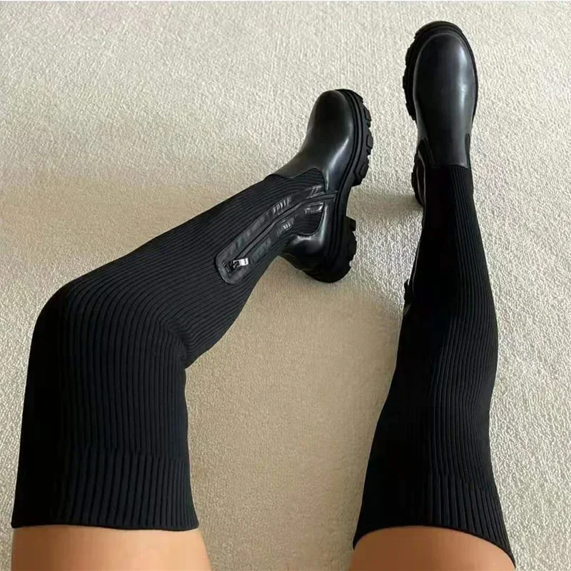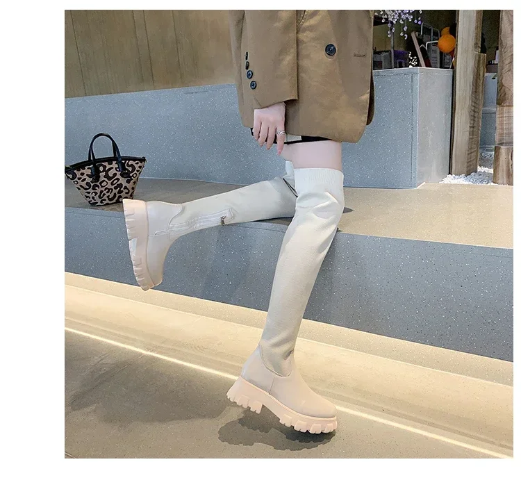 Women's Solid Color Chunky Heel Boots, Stylish Side Zipper Over The Knee Boots, Fashion Platform Long Boots