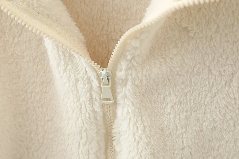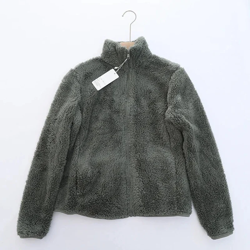 Women's Solid Color Fleece Coat Autumn Winter Warm Zipper Hoodie Loose Stand Collar Jacket Fashion Casual Elegant Ladies Clothes