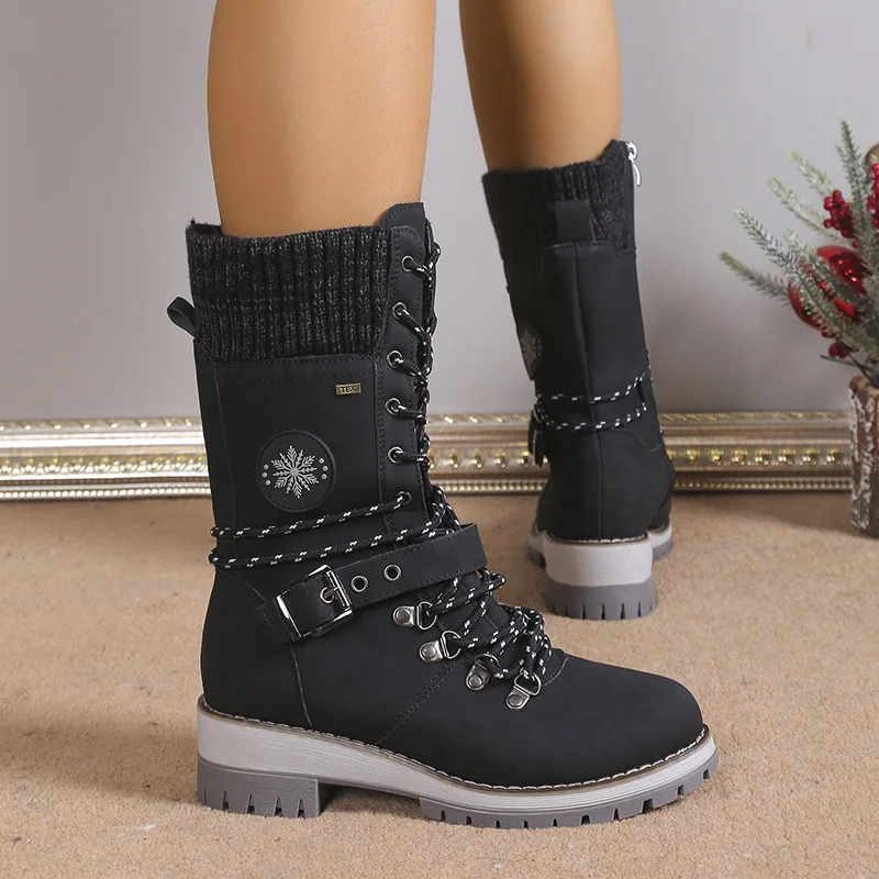 Women's Solid Color Fuzzy Boots, Soft Sole Chunky Heel Fleece Lining Boots, Winter Non-slip Snow Boots