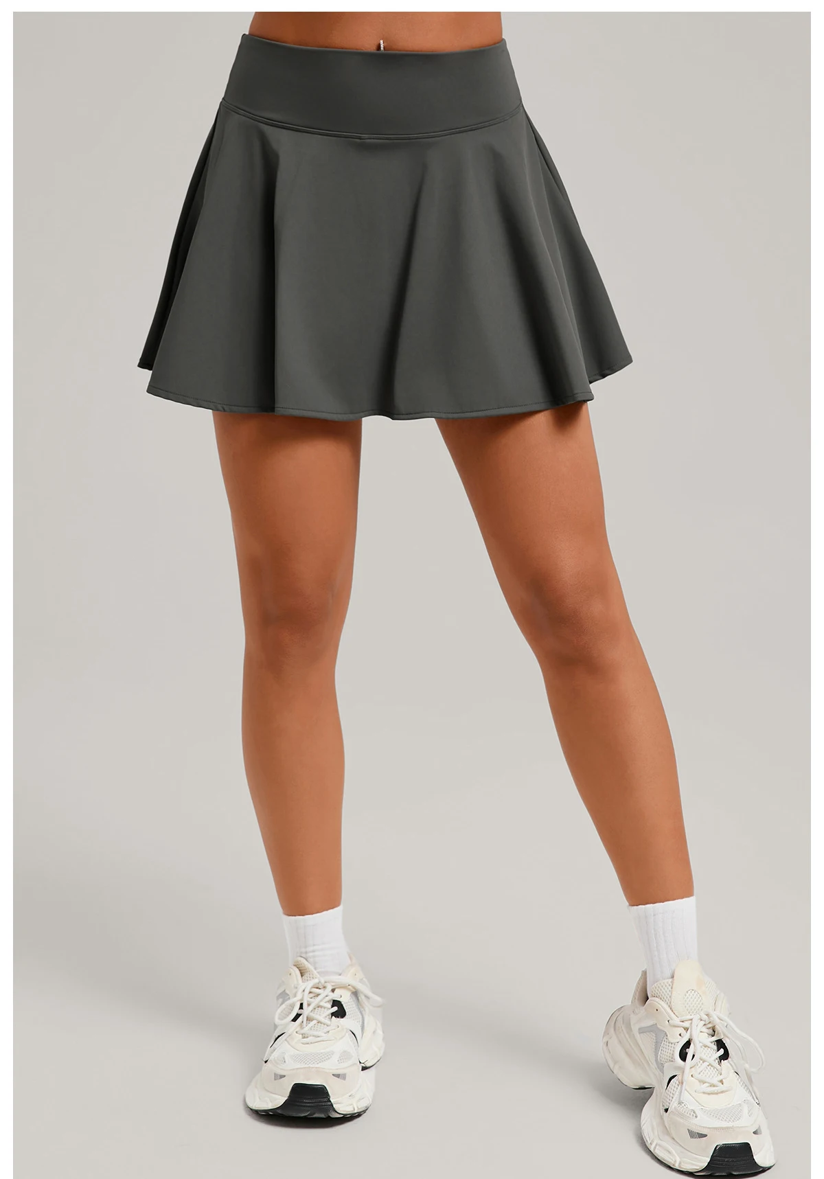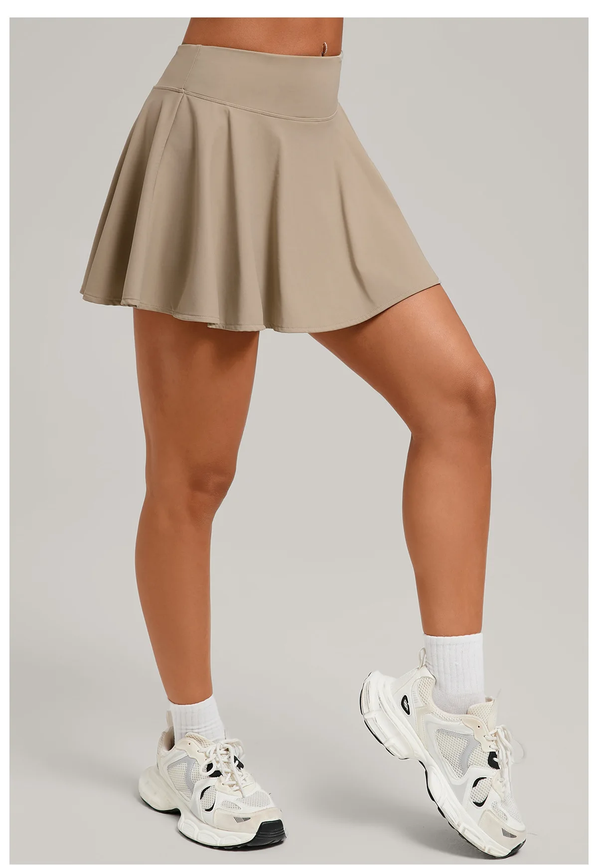 Women's Sports High Waisted Short Skirt Comfortable Breathable Belt Safety Pants and Pocket Tennis Workout Yoga Golf Mini Skirt