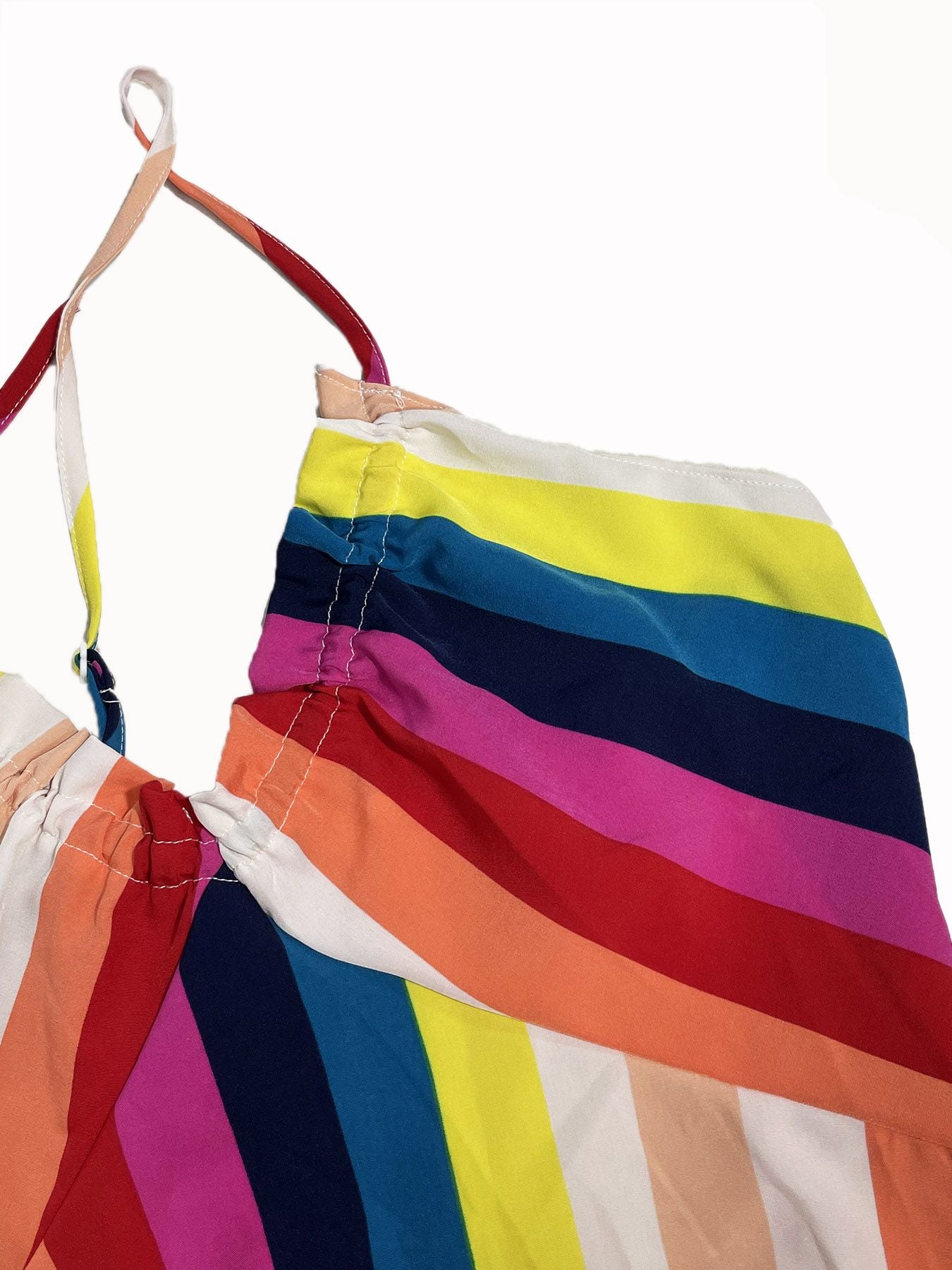 Women's Summer Ethnic Pattern Backless Split Thigh Dress Ladies Summer Clothes Boho Fashion Frill Trim Long Dress for Beach