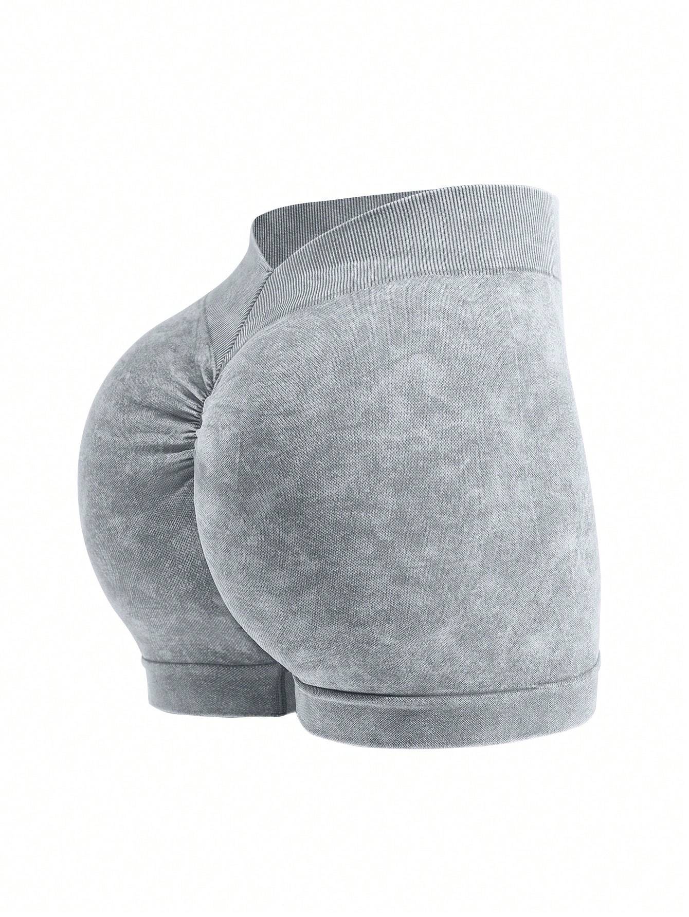 Women's Washed Yoga Shorts Fitness Quick Drying High Waist Workout Biker Shorts Hip Lift V Waist Sports Shorts