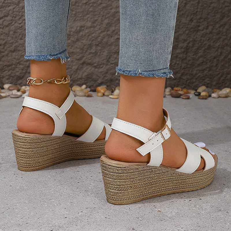 Women's White Chunky Platform Sandals Summer 2024 Buckle Strap Wedge Sandals for Woman Thick Sole Non Slip Beach Sandalias Mujer