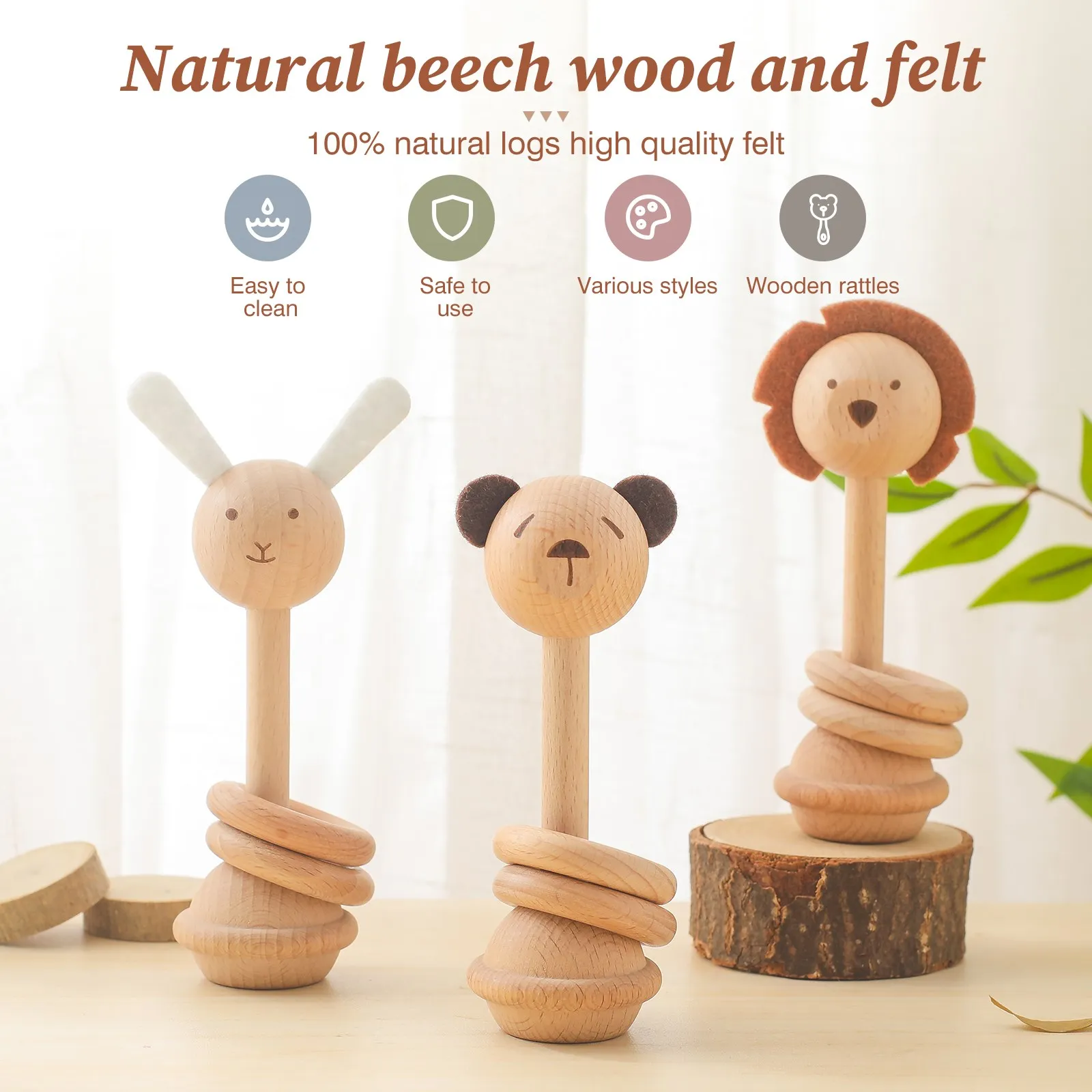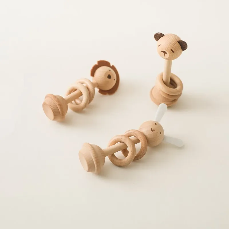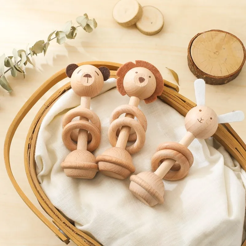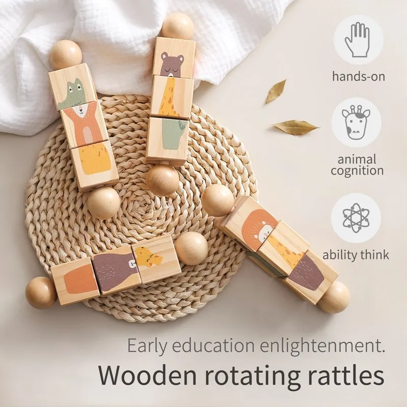 Wooden Animal Rattle Toys for Newborn Wooden Teether Baby 0 12 Months Baby Accessory Cartoon Novel Baby Care Tools Teether Toys
