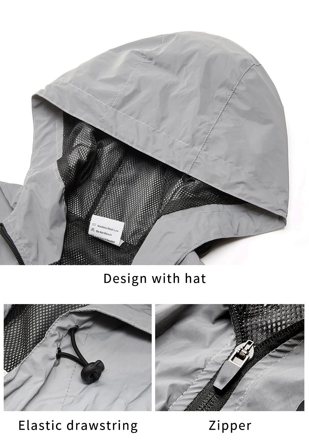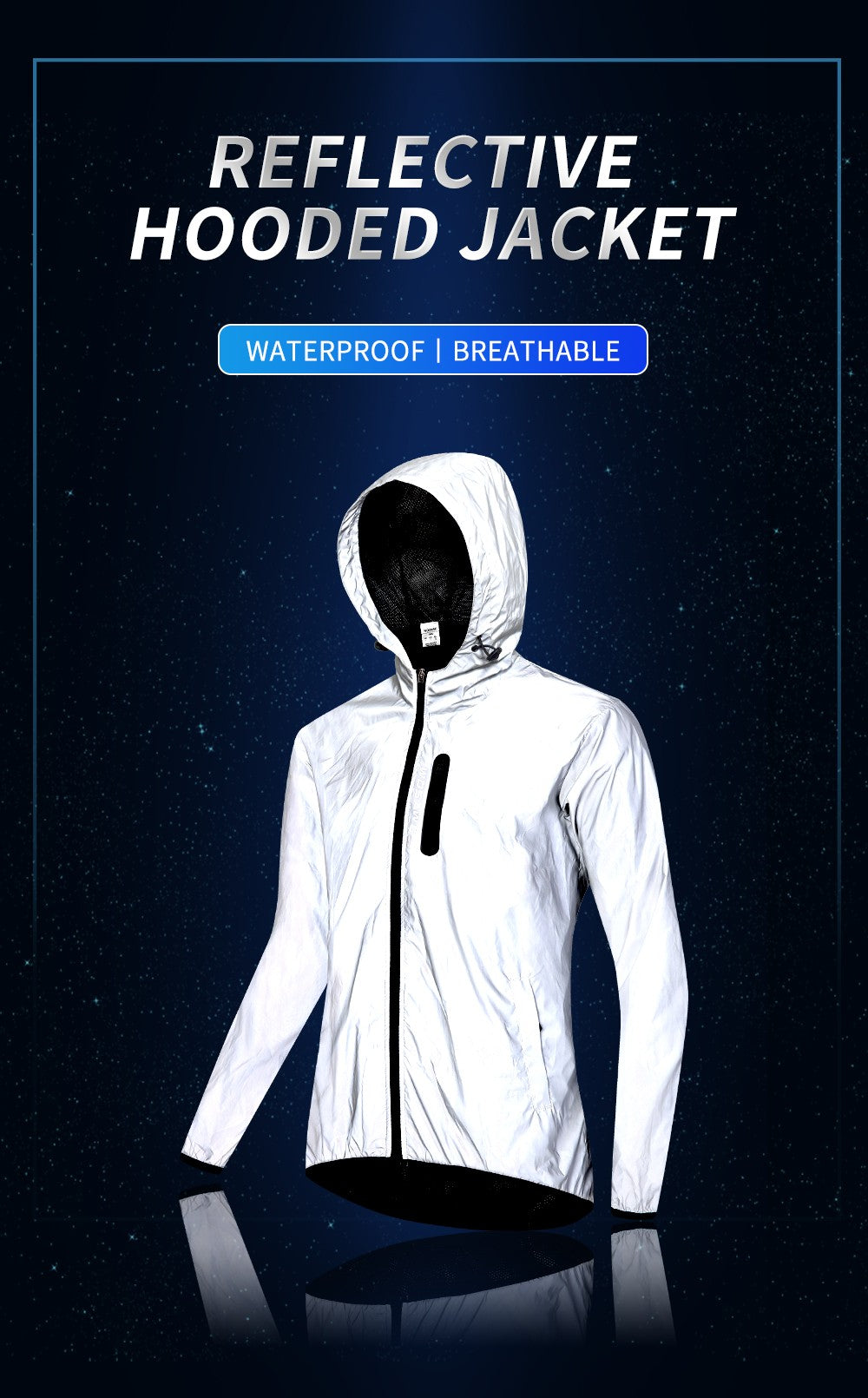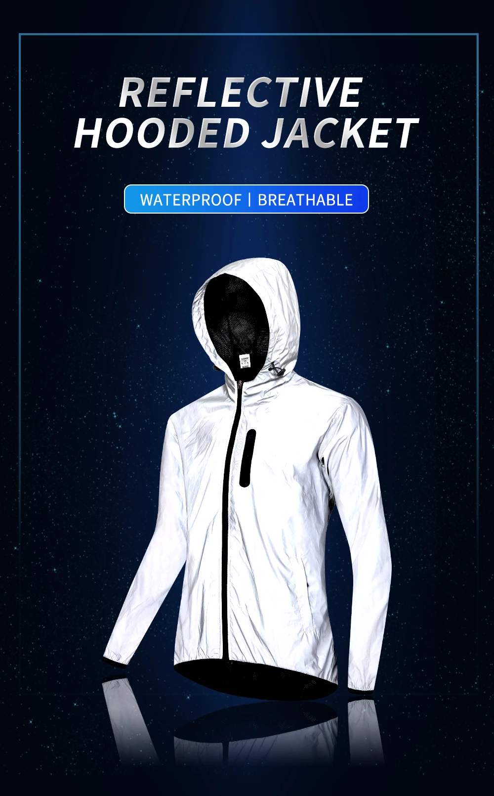 WOSAWE Full Reflective Jacket with Hoodie Waterproof Wind Breaker Men Women Hiking Cycling Running Safety Jacket High Visibility