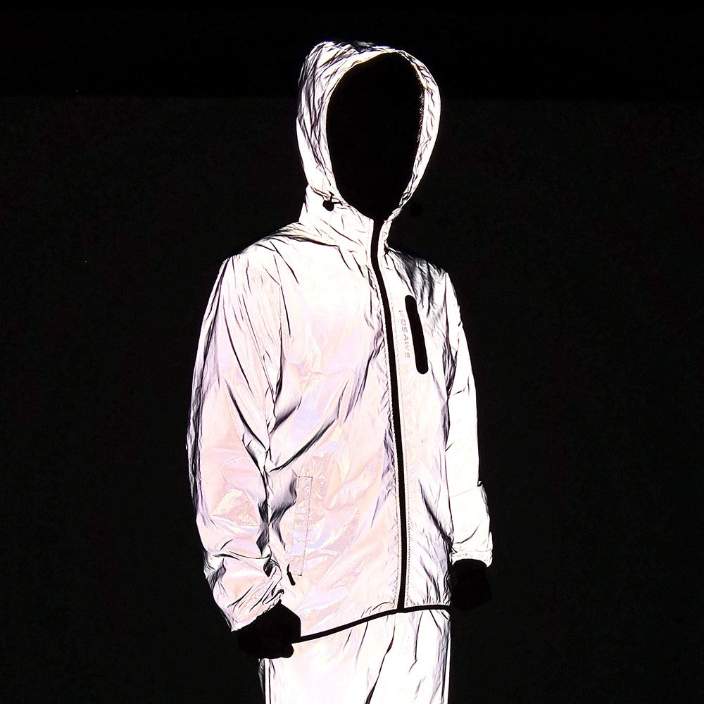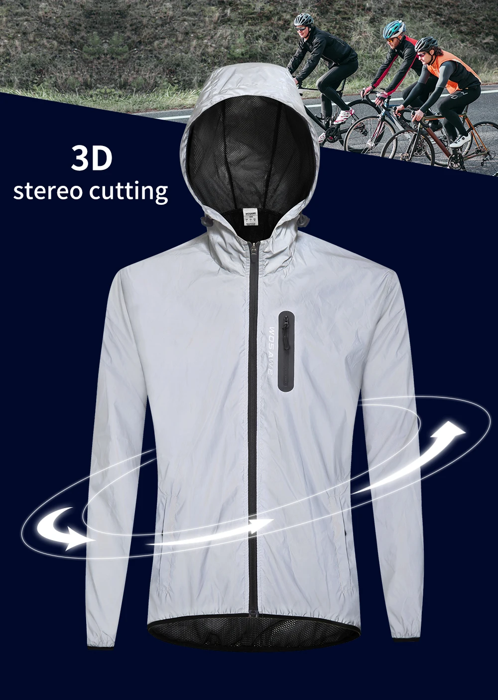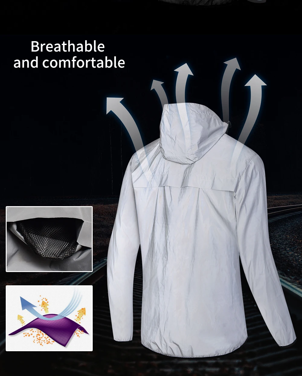 WOSAWE Full Reflective Jacket with Hoodie Waterproof Wind Breaker Men Women Hiking Cycling Running Safety Jacket High Visibility