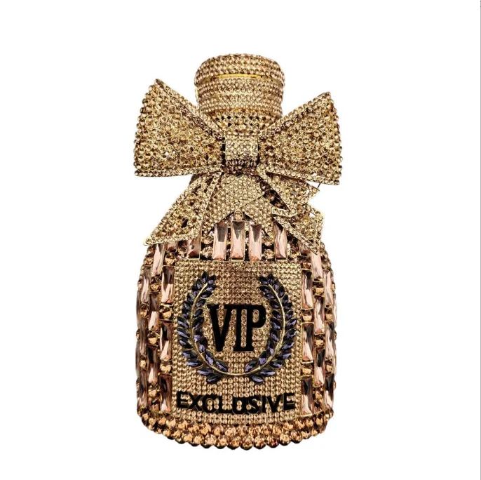 XIYUAN Women Rhinestones Clutch Purse Champagne Bottle Evening Bags Diamond Hard Metal Clutches Wedding Party Minaudiere Purses