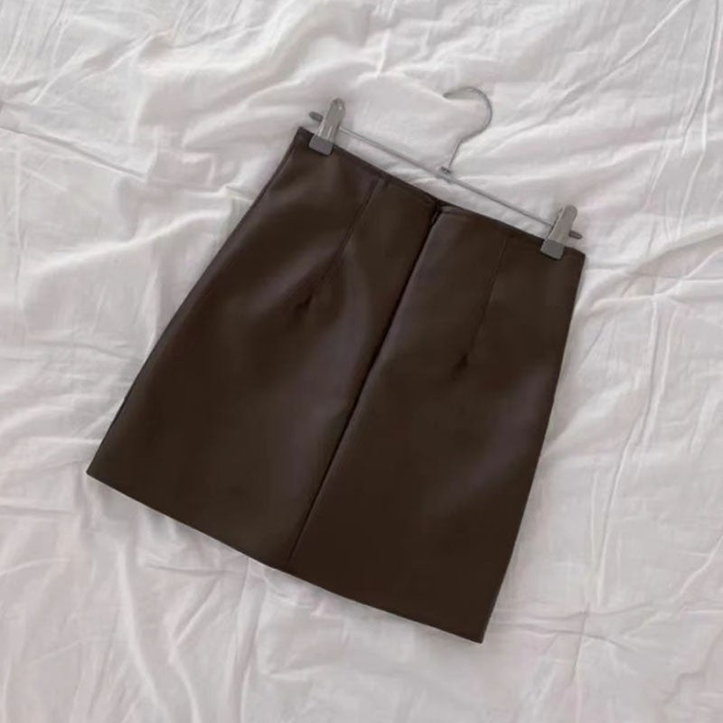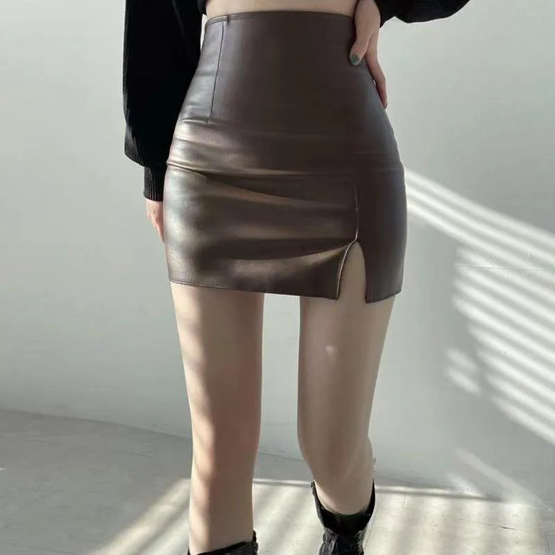 Xpqbb Balck PU Leather Mini Skirt Women Sexy Skinny High Waist Side Split Hip Skirts Autumn New Korean Office Lady Short Skirt