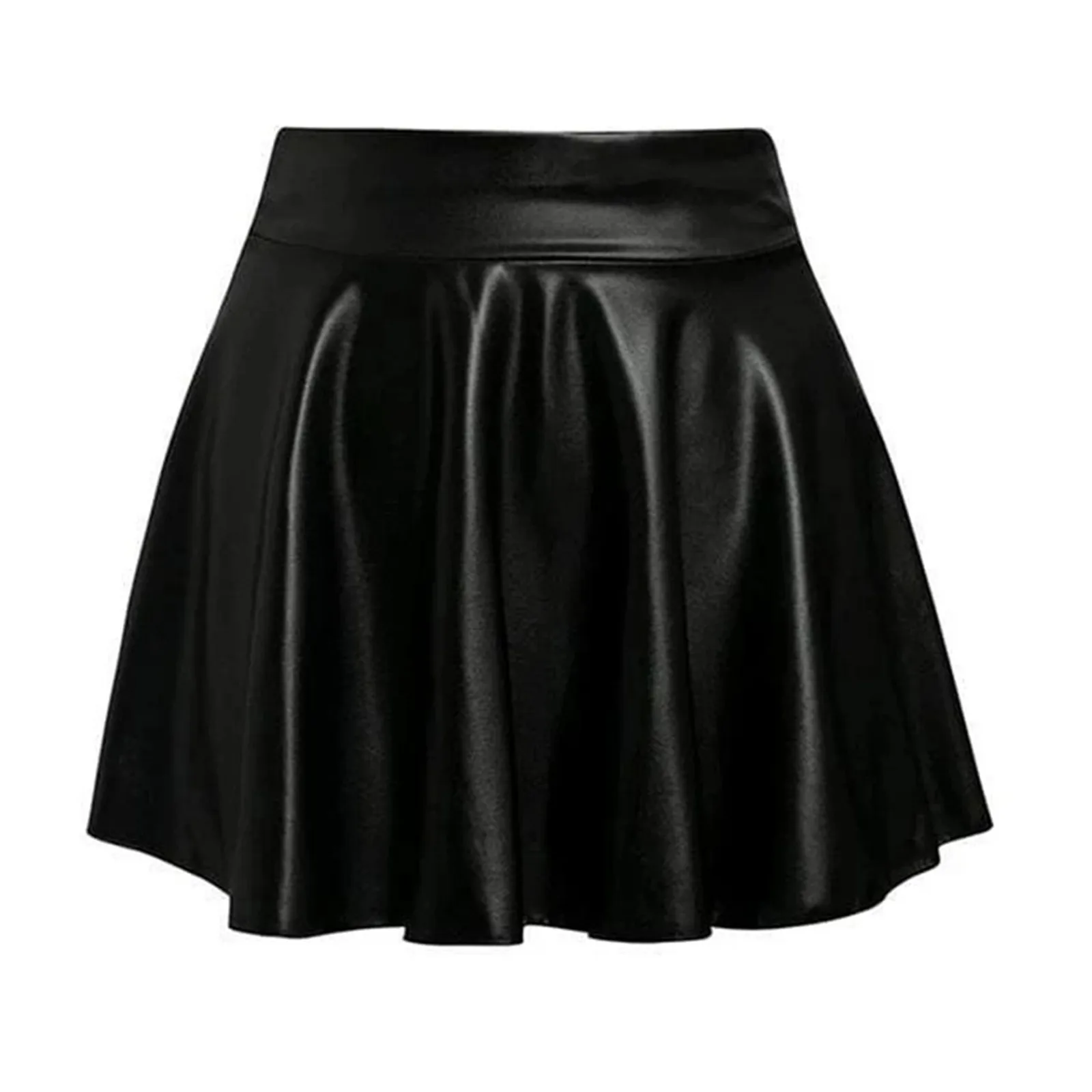 Women's Fashion High Waist Pleated Solid Color Short Skirt Loose Skirt Metallic Skater Skirt Sparkly Shiny Flared Pleated A Line Mini Skort