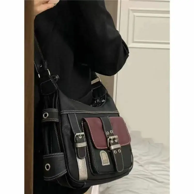 Y2K Vintage Crossbody Bag Women's Tote High Quality PU Leather Shoulder Bag Hip Hop Messenger Bag Female Large Handbag Commuter