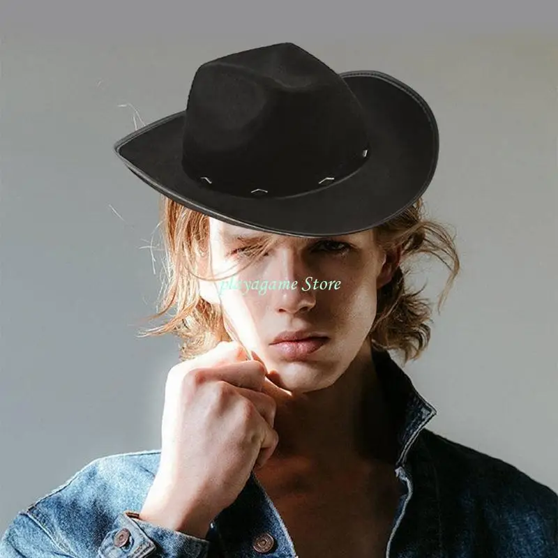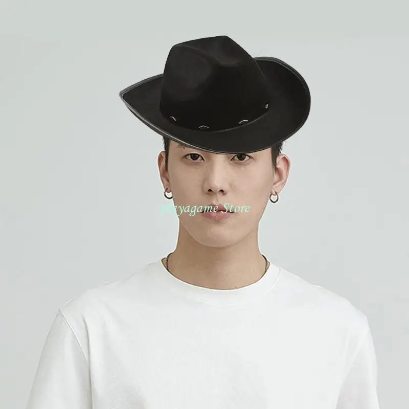 Y88A Cowboy Hat with Adjustable Rope Cowgirls Big Brim Party Accessory