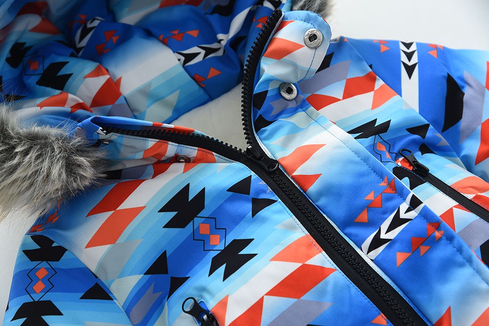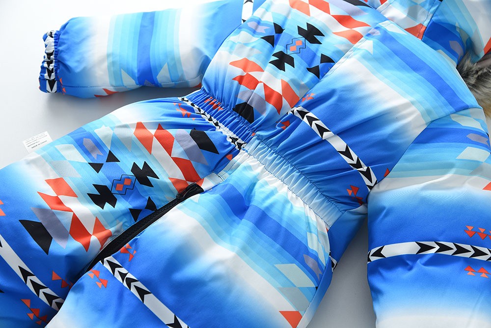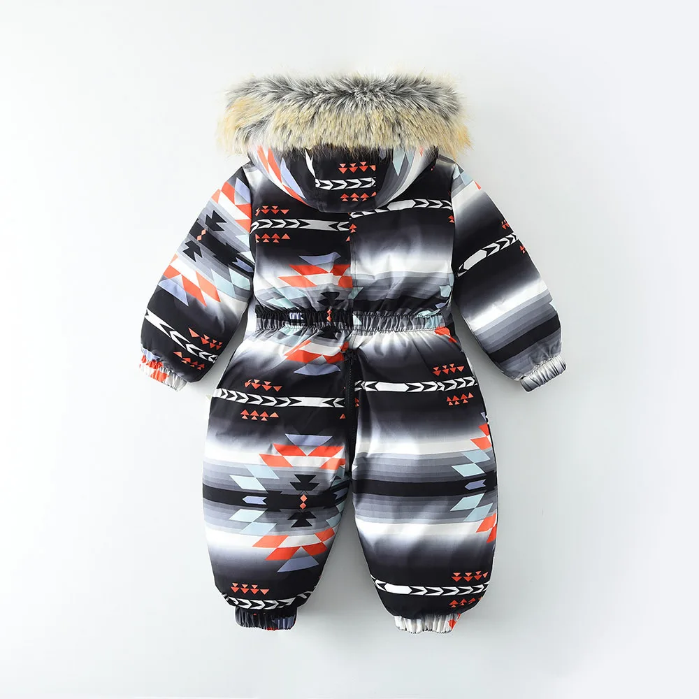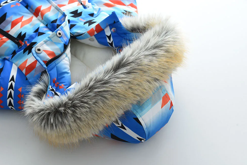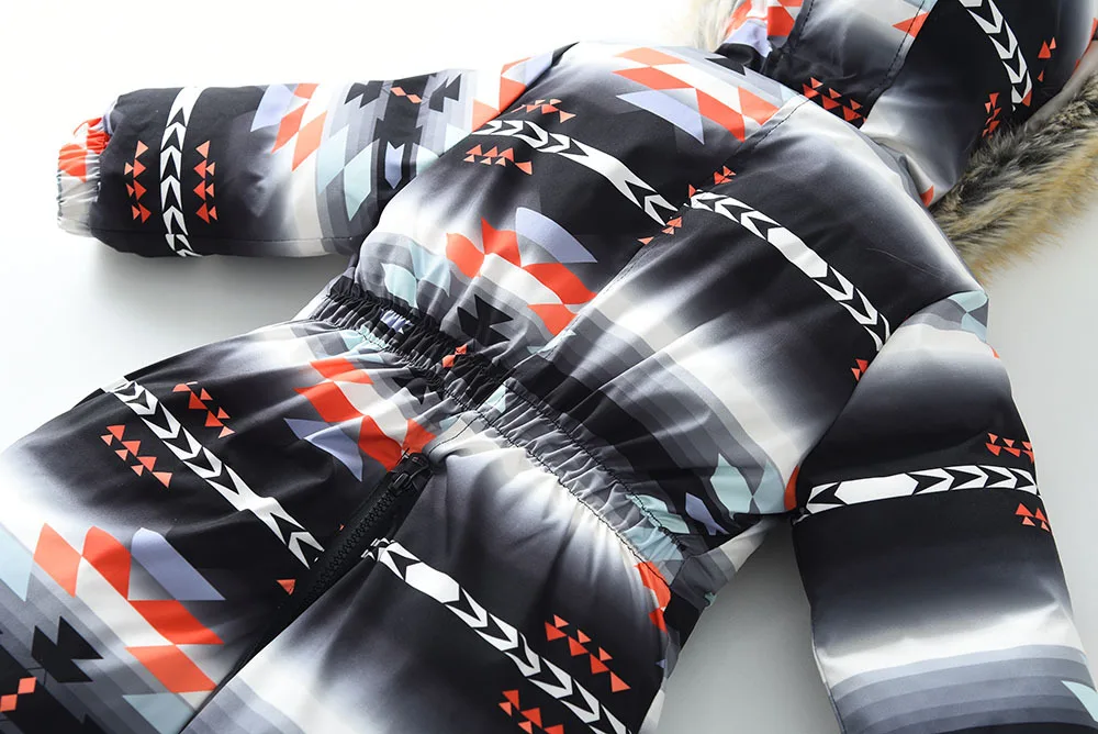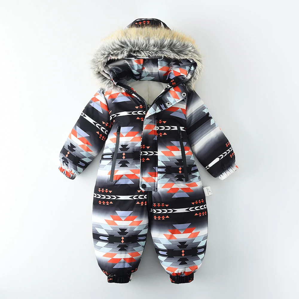 YBFSKID Kids Boys Winter Rompers Geometric Pattern Plush Thick Toddler Baby Boys Ski Suit Fur Collar Little Boys Jumpsuit Outfit